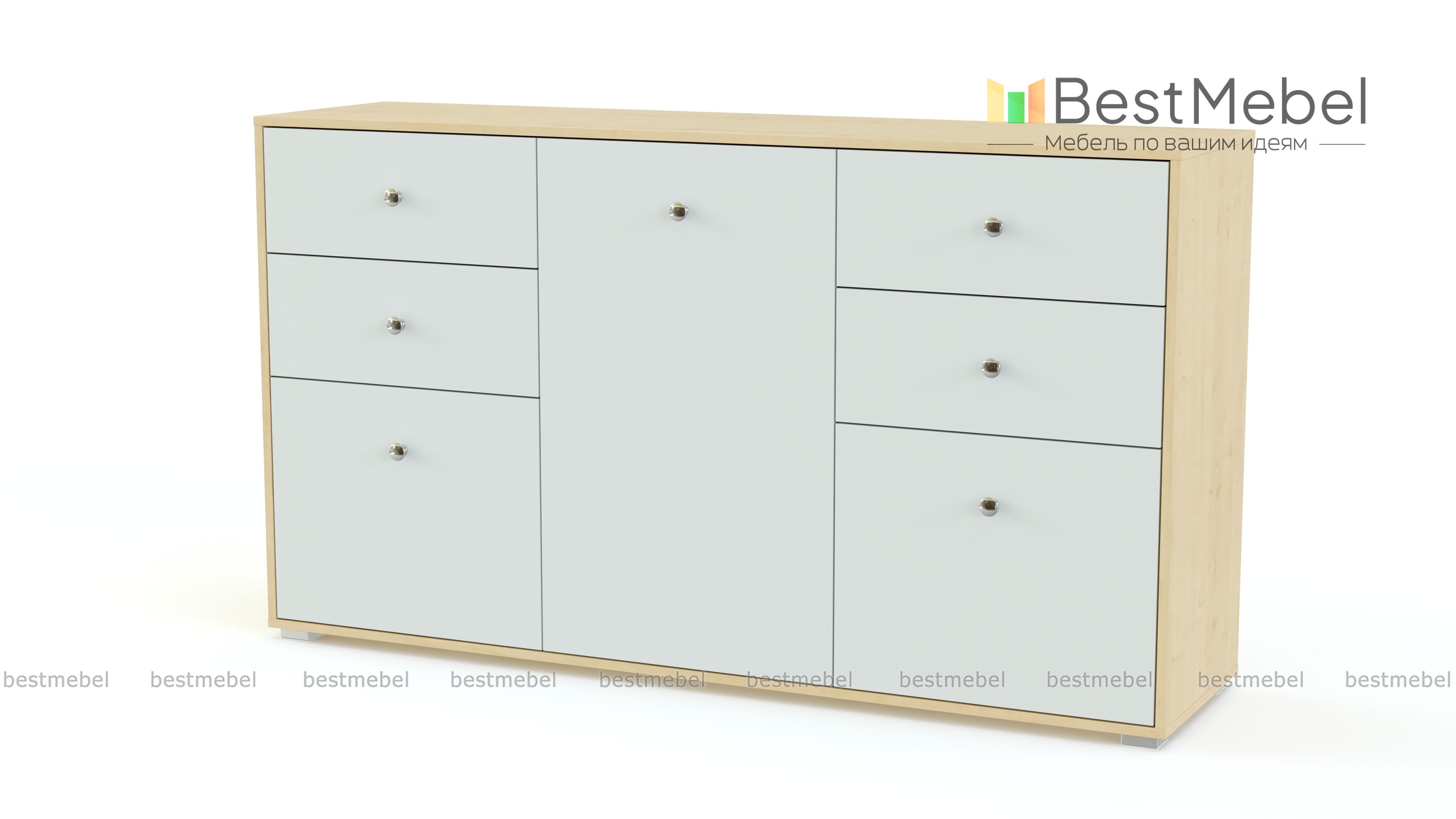 Вместительная модель Аватар BMS смотрится легкой благодаря матовым фасадам и гармоничным пропорциям. Комод оснащен просторным распашным отделением в центре и боковыми тумбами с выдвижными ящиками. Насыщенные оттенки и необычные круглые ручки делают его особенно привлекательным и подходящим для использования в детской комнате. Игрушкам, книгам и спортивным принадлежностям будет обеспечено аккуратное хранение, а яркий дизайн порадует и детей, и родителей.