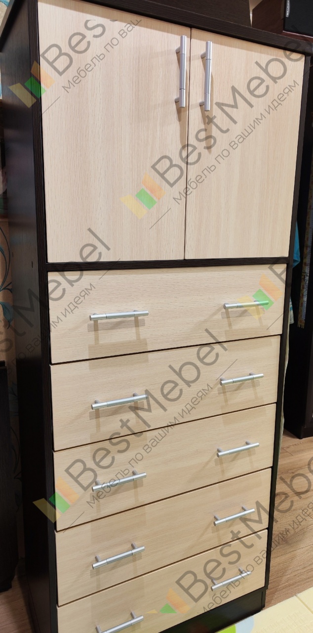 Всем доброго времени суток! Случайно наткнулся на этот комод и эту компанию во время поиска мебели в интернете, искал себе что-то похожее на "шкаф-комод". Очень зацепило, то что прямо на сайте можно выбирать многие размеры и параметры мебели. А в 3D режиме смотришь как будет выглядит мебель в разных расцветках. Определился с размерами и параметрами, разместил Заказ 00000353924. Через 10 минут со мной уже связался менеджер, уточнил параметры которые я немного изменил, уточнил адрес и уже назначил доставку на 4 день, что меня очень удивило, так как мебель под индивидуальные параметры обычно изготавливается гораздо дольше. Доставка до подъезда бесплатная, что очень тоже порадовало.Теперь о негативном.1. Негатив начинается уже со сборки. Отсутствует схема сборки, в моем случае был только чертеж, без каких либо параметров(просто картинка мебели). Но наклейки на каждой детали мебели, компенсируют отсутствие схемы.2. "Пакет с фурнитурой" - это конечно прикол... все саморезы(разных размеров), винты, гвозди и тд, всё это в одной куче, я уже не говорю о том что нигде не указано, какой и куда предназначается, но то что при сборке теряешь до 30 минут времени что бы перебрать всю фурнитуру по кучкам и по пакетикам, что бы облегчить потом поиски при сборке... Ну неужели пакетики такие дорогие, что бы разделить это всё?После завершения сборки мебели, в моём варианте исполнения, обнаружилось несколько проблем.1. Так, как я заказал с изменением конструкции, со шкафом в верхней части комода и общая высота 1650, от веса начали разъезжаться стойки на 1-2мм в сторону, из-за чего начали выпадать из рельс центральные выдвижные ящики. Спустя 1.5-2 недели, мне бесплатно довезли две царги для стяжки, которые я установил в центральную часть комода и проблема ушла.2. Заказал два выдвижных ящика с дополнительными разделёнными ячейками(6 ячеек). Их можно выбрать прямо с сайта, во время конфигурации мебели. Две дальние ячейки практически не доступны, так как ящик выдвигается не до конца, остается доступ к ячейкам в 3-4 сантиметра. Считаю это технический недочет проектировщиков. Что бы это исправить мне предложили либо переделать полностью ящики за мой счёт с немного другим расположением ячеек, либо докупить специальные направляющие с полным выдвижением. Тут я конечно удивился, что этот косяк повесили на меня. Потому что на сайте нет ни какой информации, схем и чертежей на этот счет, как это будет выглядеть изначально не мог знать и даже не предполагал что такое может быть. Ящики так и остались неисправленными, пользуюсь пока так.3. Дверцы шкафчика. После регулировки, с каждой стороны имелся зазор почти в 5мм, что очень выглядело нелепо. Щели такие что можно было разглядеть содержимое шкафа. Долго спорил с гарантийным отделов, в итоге признали гарантийным случаем и поменяли дверцы бесплатно. Новые дверцы, каждая шире на 2-2.5мм, в итоге отрегулировал на стандартный зазор в 3мм.4. Пол шкафчика. На чертеже не разглядел, что он утопленный, по отношению фасада выдвижных ящиков и шкафчика дверей, а фасад не укрывает эту щель. Это смотрелось очень не красиво, в связи с этим мне пришлось докупать отдельно эту деталь, которая стоила дополнительно 850р. Косяк признали за мной, так как я не разглядел чертеж, несмотря на то, что на сайте выглядит это по другому.Так же забыли положить подпятники, но их довезли вмес