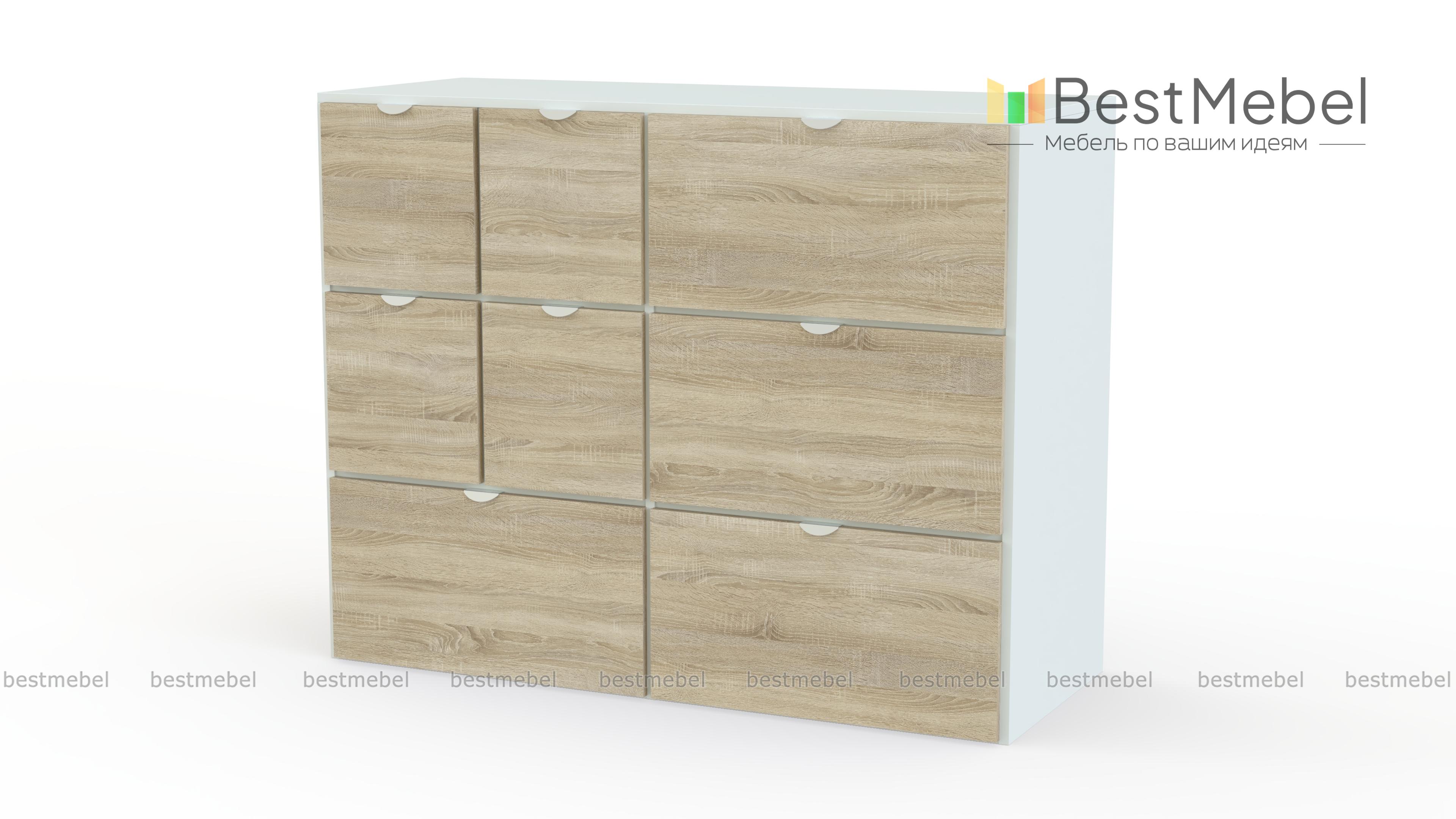 Комод Вистхус Visthus 3 – для тех, кто привык к рациональной организации пространства и порядку в вещах. Продуманная система хранения включает в себя четыре больших выдвижных ящика и четыре малых, в которых найдется место для одежды, аксессуаров, постельного белья и множества мелочей. Светлые фасады, разделенные контрастными вставками, оснащены полукруглыми торцевыми ручками. Купить комод Вистхус Visthus 3 для меблировки спальни, гостиной или прихожей вы сможете в нашем интернет-магазине. Выбирайте мебель в стиле IKEA (ИКЕА) от производителя BestMebelShop!