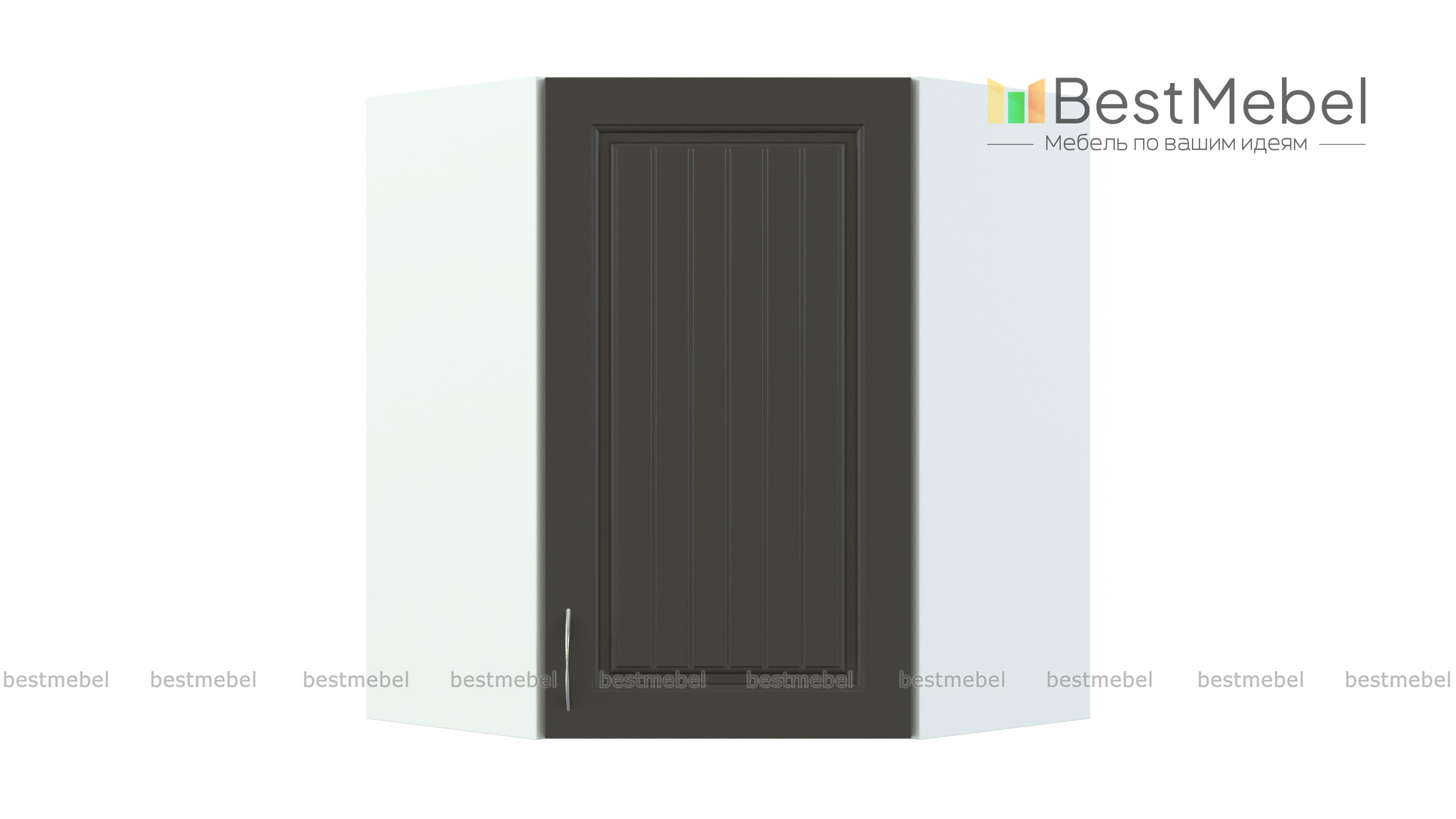 Шкаф навесной угловой Николь BMS выполнен в форме трапеции и отличается вместительностью и функциональностью. Модель выгодно использует угловое пространство кухни и предназначена для стыковки боковых модулей верхнего ряда. За распашной дверцей находится внутреннее отделение с полкой для хранения продуктов и кухонных аксессуаров. Фасады светлых тонов с фрезеровкой и ручкой под серебро станут частью элегантного комплекта в стиле кантри. Купить шкаф навесной угловой Николь BMS вы сможете по лучшей цене в нашем интернет-магазине.