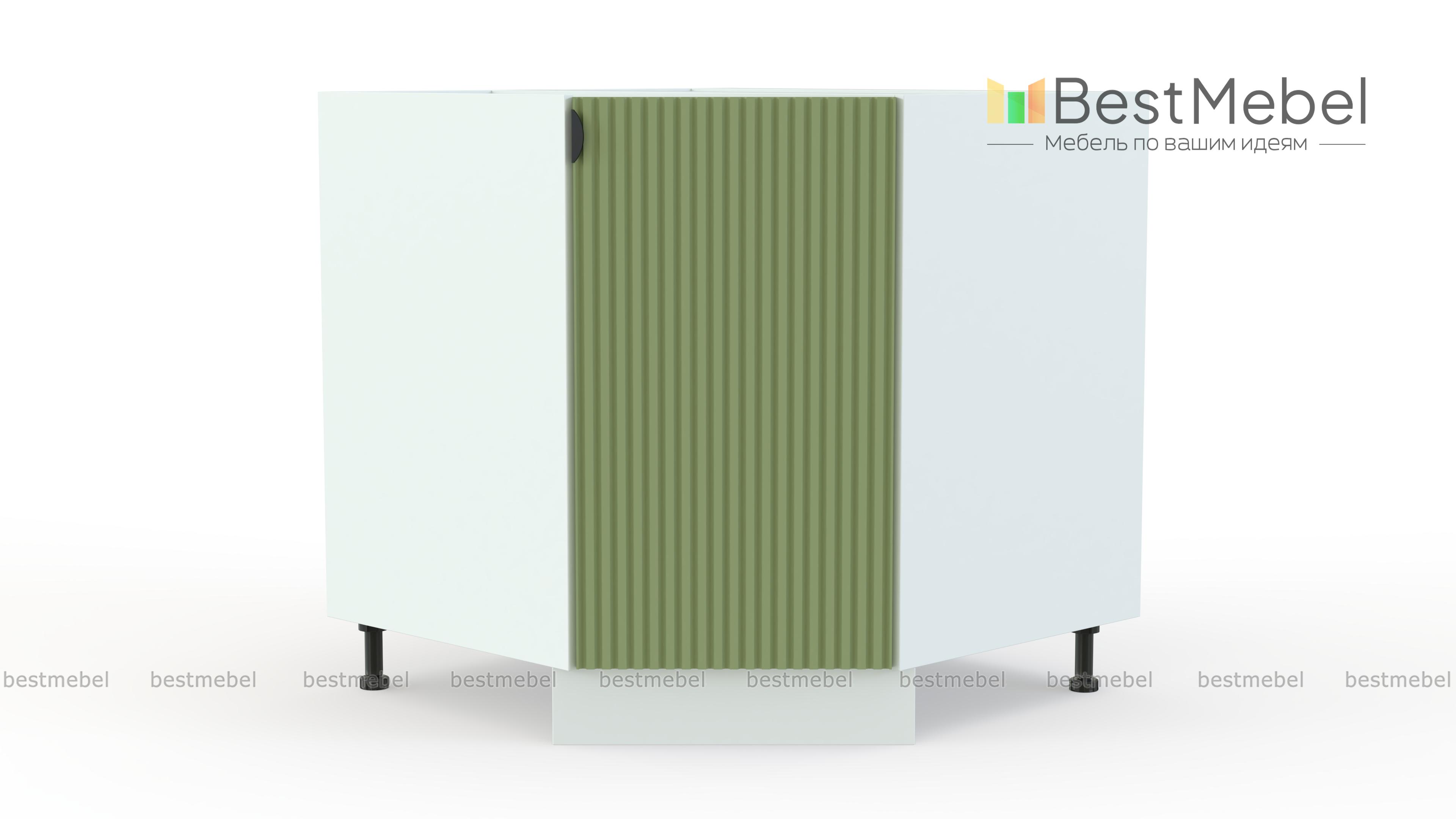 Шкаф нижний угловой (трапеция) Альберт BMS задействует угловую часть кухни и служит для стыковки модулей. Распашная дверца имеет декоративную рифленую отделку и миниатюрную торцевую ручку в контрастном цвете. Внутри шкаф оборудован полкой, что позволяет эффективно использовать пространство для хранения посуды и продуктов. Купить шкаф нижний угловой (трапеция) Альберт BMS с изготовлением по индивидуальным размерам вы сможете на сайте нашего интернет-магазина.
