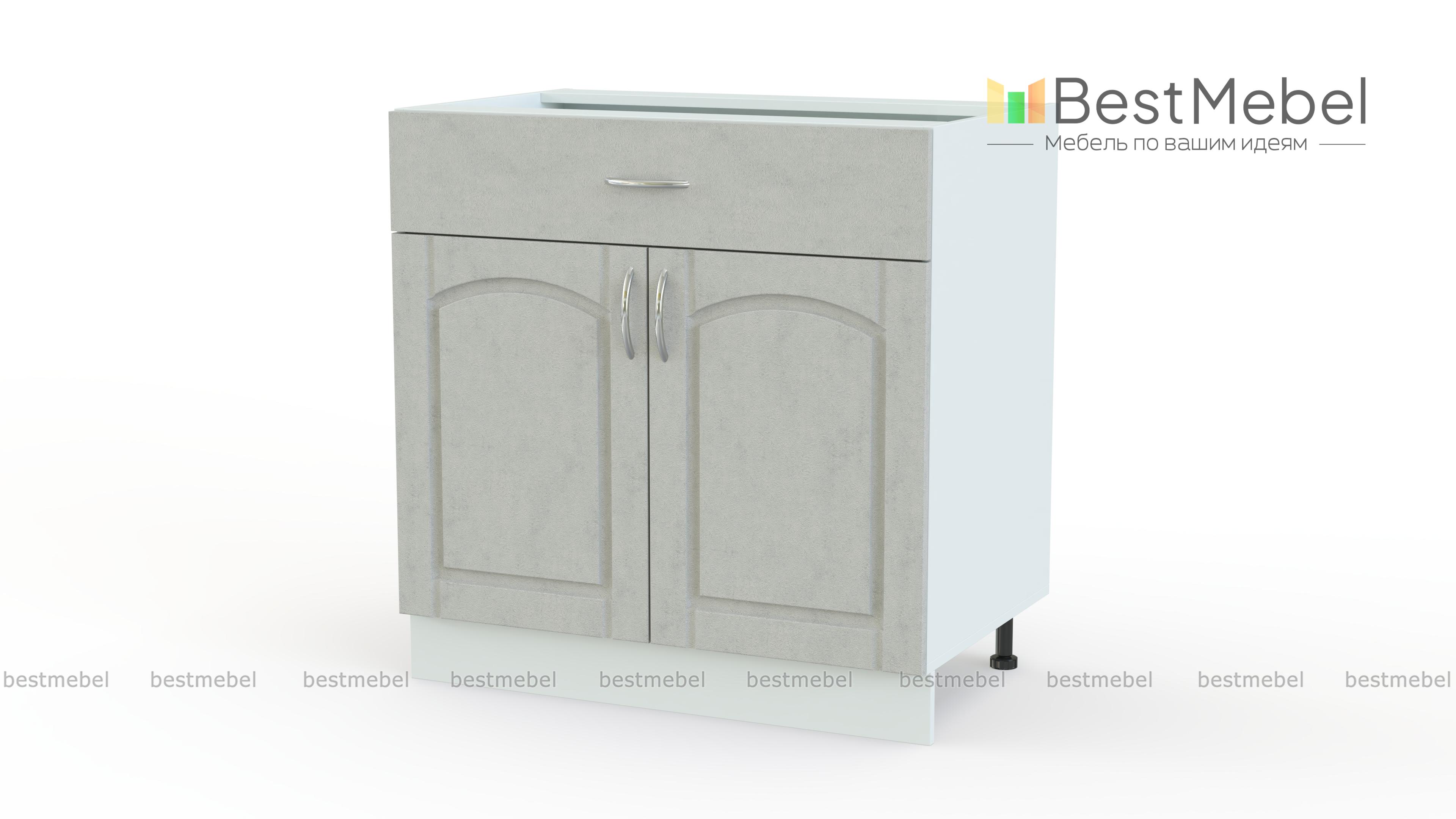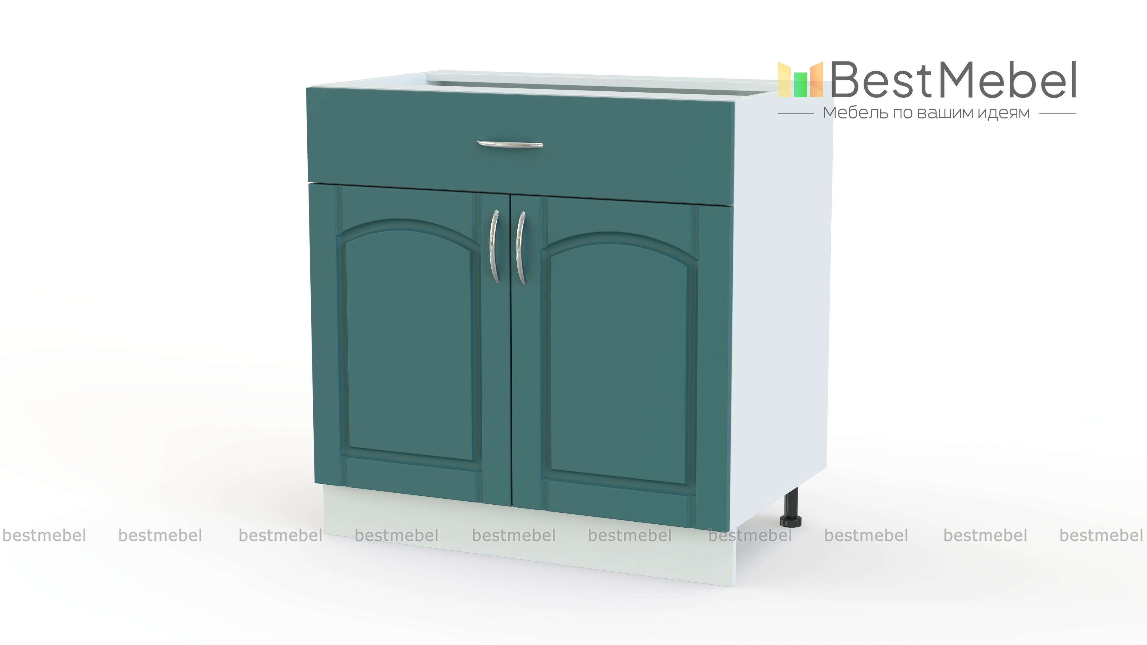 Стол с ящиком Трапеза BMS дополнит нижний ряд модулей кухонного гарнитура в классическом стиле. Тумба отличается практичной комбинированной конструкцией и оборудована широким выдвижным ящиком, удобным для хранения столовых приборов и прочих мелких вещей, и распашным отделением с полкой для габаритных предметов и продуктов. Изящные фасады выполнены в модном пастельном оттенке и украшены ручками-скобами под серебро. Купить стол с ящиком Трапеза BMS для эстетичного и комфортного интерьера приглашаем в наш интернет-магазин.