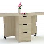 Кухонный стол Немо 1 BMS выполнен в темном венге и отличается строгим лаконичным дизайном. Тумба с тремя глубокими ящиками и удобными ручками-вырезами разместит канцелярские принадлежности и бытовые мелочи, а при помощи складных боковин и выкатных опор легко превратится в стол. Простая и надежная конструкция дает возможность получить маленький столик на двоих или широкий классический стол с прямоугольной столешницей. Купить кухонный стол Немо 1 BMS приглашаем в наш интернет-магазин.