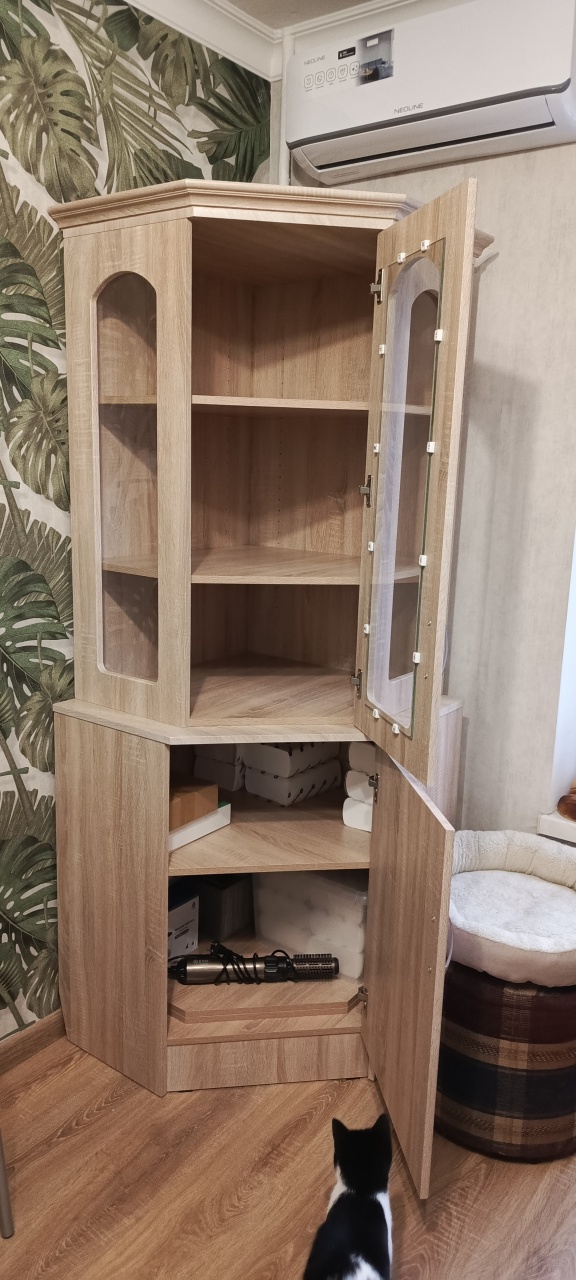 Удобный угловой буфет. Идеально заполнил угол на кухне. Хорошо, что можно заказать изготовление по своим размерам