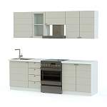 Недорогой комплект в современном стиле Квадро 1500 BMS не только эстетично выглядит, но и отличается функциональностью. Классическое сочетание трех нижних и трех верхних элементов обеспечивает рациональный подход к хранению необходимых на кухне вещей. Фасады, выполненные в универсальных матовых тонах, декорированы горизонтальными линиями и крупными круглыми ручками. Благодаря простым формам и возможности выбора расцветки кухня легко впишется в интерьер вашего дома.