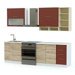 Кухня София микс BMS – компактная кухня современного дизайна, которая сразу привлекает внимание гармоничным сочетанием классических оттенков под массив дерева и контрастных тонов. Для максимального удобства размещения бытовой техники, посуды и столовых приборов модель оборудована в нижней части тремя тумбами – под мойку, с распашными отделениями и выдвижными ящиками. Навесные элементы – открывающиеся вверх ящики и открытые полки. Купить кухню София микс BMS по лучшей цене приглашаем в наш интернет-магазин.