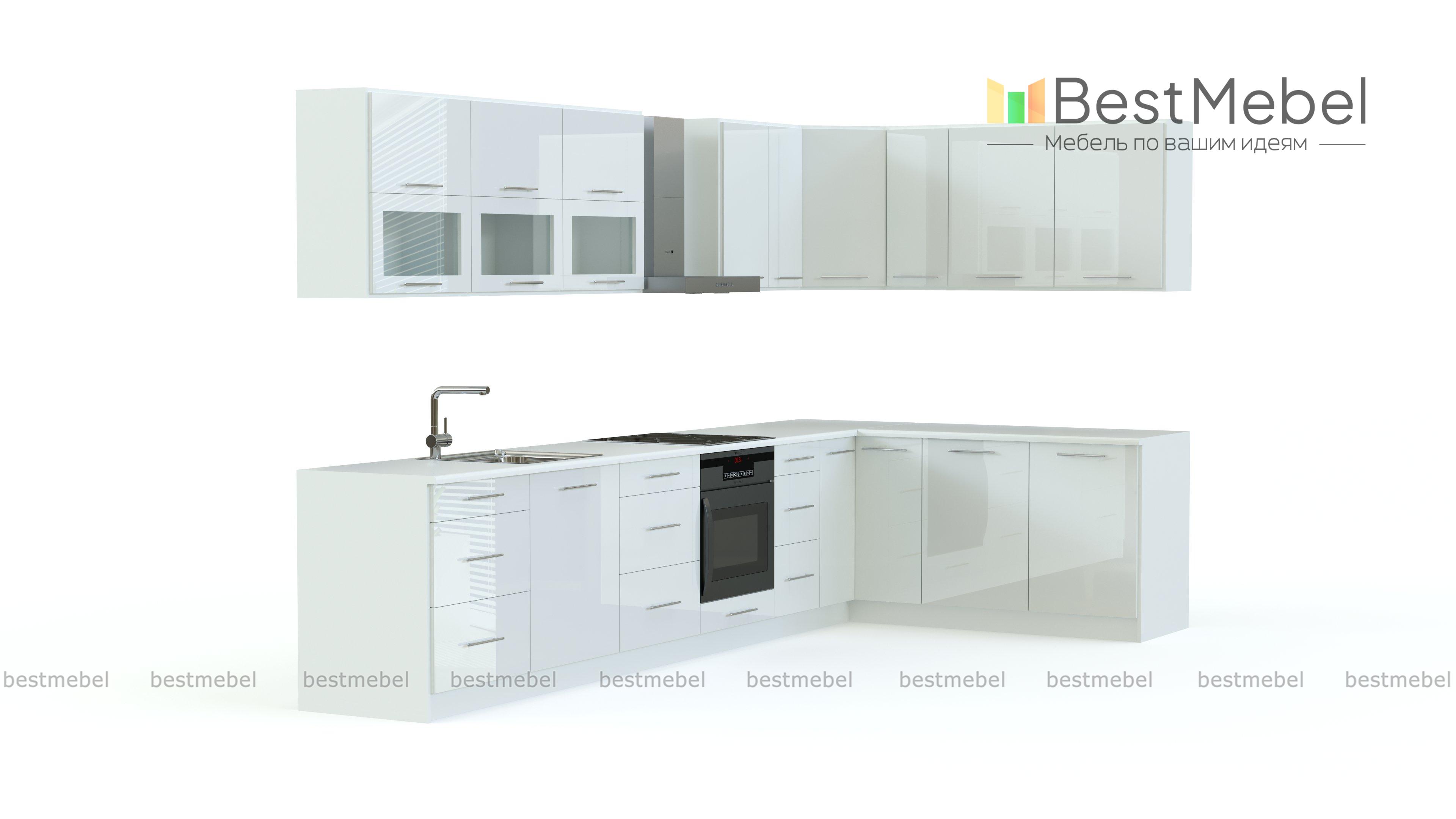 Кухня Стандарт BMS имеет традиционный для современных вариантов лаконичный дизайн и отличается высокой функциональностью и качеством исполнения. Угловая конструкция обеспечивает экономию места, а разнообразные отделения верхних и нижних модулей позволят разместить все необходимые вещи. Гладкие ровные фасады с эргономичными ручками идеально впишутся в минималистичный интерьер. Оживляют строгую композицию навесные посудные шкафчики с матовыми стеклянными дверцами.
