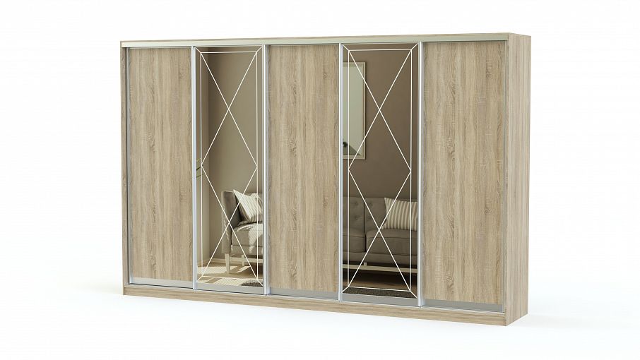 Стильный и вместительный шкаф-купе, который можно установить в прихожей, гостиной или разделить им пространство на зоны в небольшой квартире. Дизайн изделия можно подобрать по своему усмотрению. Это может быть ДСП с фактурой дерева, его сочетание с зеркалами или полностью зеркальная поверхность. Конструкция шкафа имеет вместительные полки и отделения со штангами для одежды на вешалках. При заказе на сайте можно выбрать цвет изделия и профиля из предложенных вариантов. Качественная алюминиевая профильная система обеспечивает легкое скольжение для бесшумного открывания. Организуйте аккуратное и компактное хранение вещей, купив шкаф-купе по доступной цене на нашем сайте.