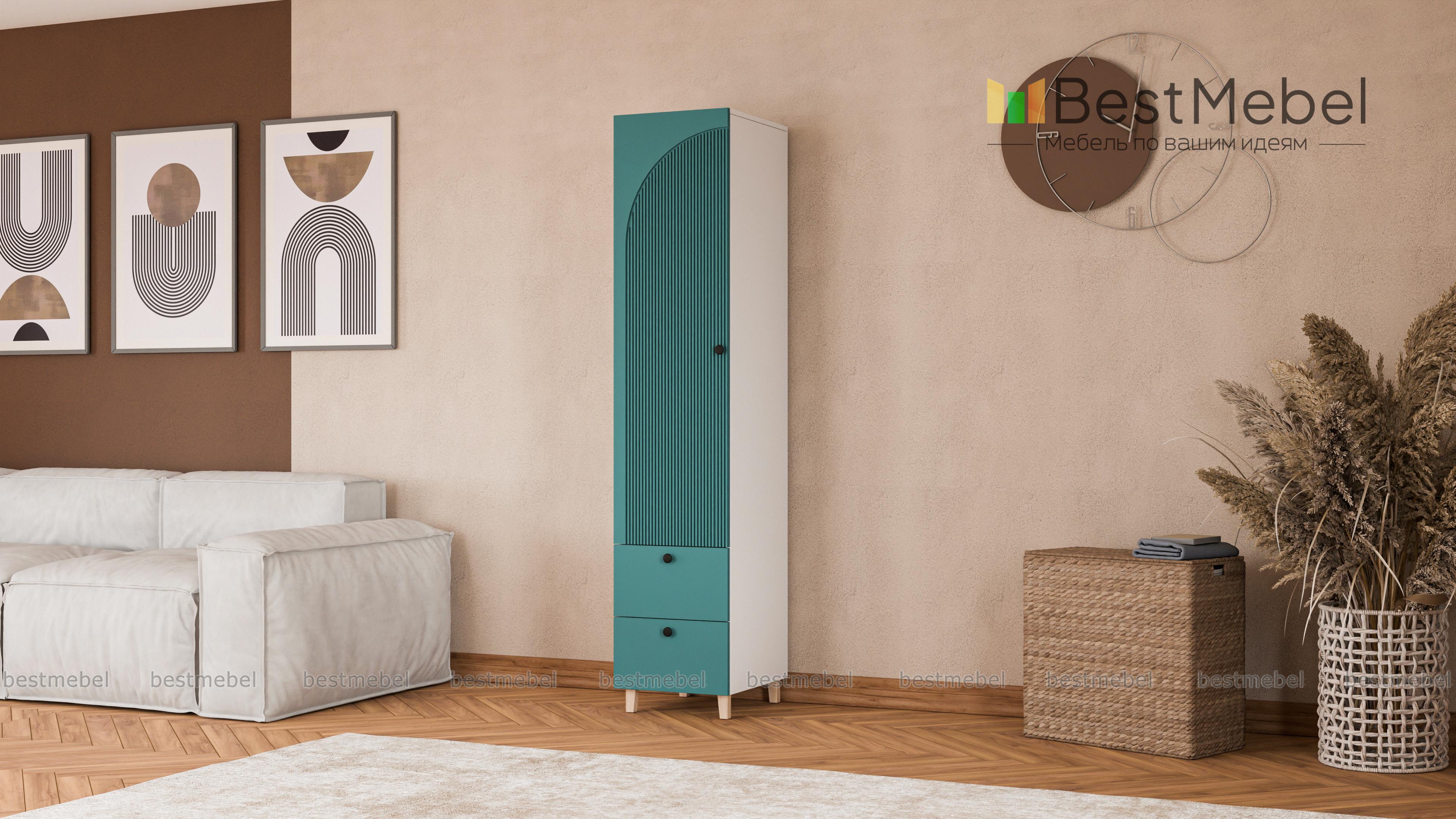 Шкаф-пенал Вивьен 4 BMS может использоваться как часть комплекта или самостоятельный предмет обстановки спальни, гостиной или прихожей. Стильный пенал с высокими ножками выполнен из ламинированной плиты и МДФ с рельефной отделкой. Помимо основного распашного отделения модель укомплектована парой выдвижных ящиков для хранения мелких вещей. Купить шкаф-пенал Вивьен 4 BMS приглашаем в наш интернет-магазин с изготовлением по индивидуальным размерам.