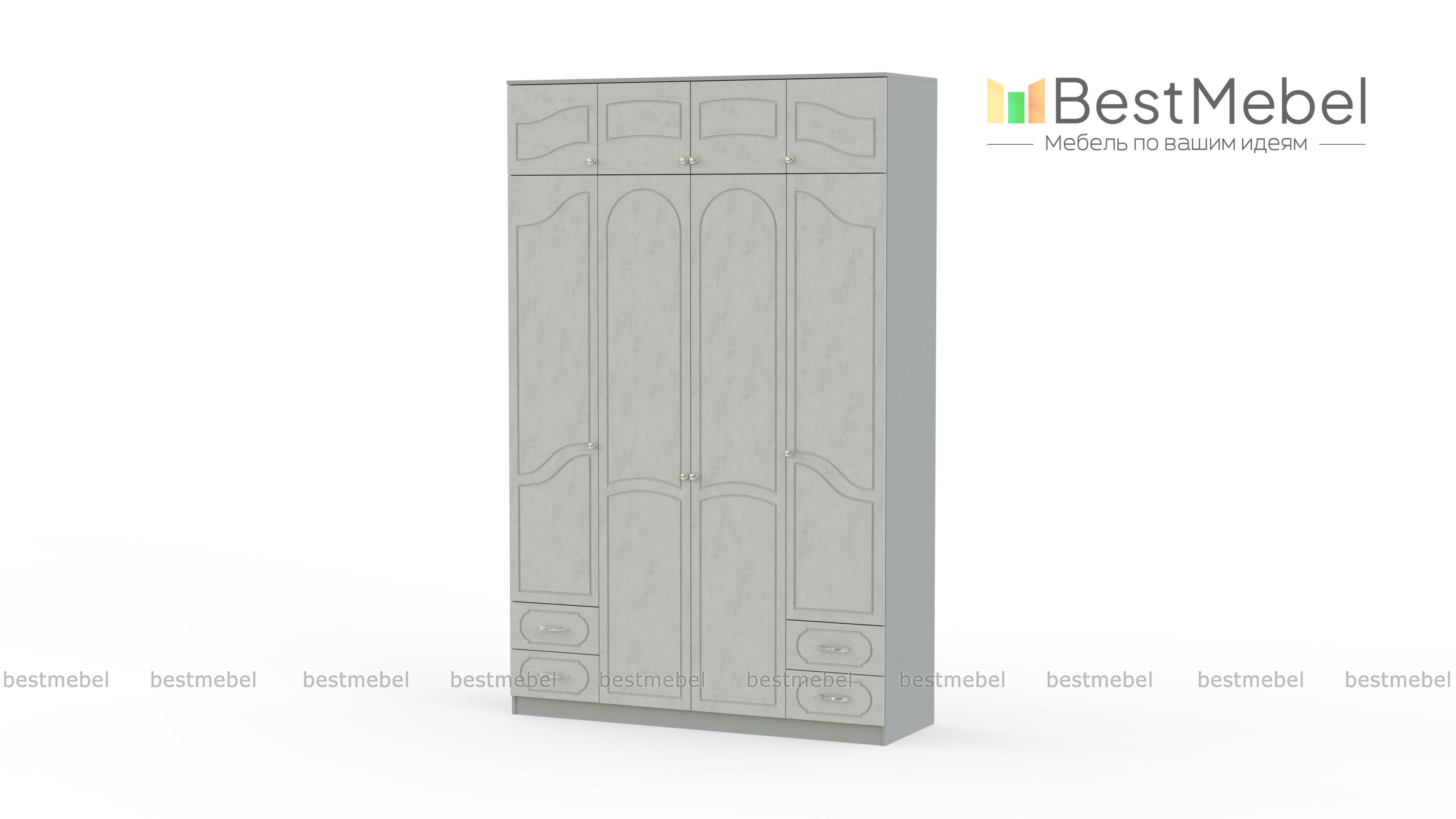 Отличным решением приобрести шкаф Поларис 4.6А BMS будет для большой семьи. Модель очень вместительна за счет центрального платяного шкафа, двух симметрично расположенных отделений с полками для хранения личных вещей, антресольного отделения с 4 закрывающимися дверцами для одеял и подушек, а также 4 выдвигающихся ящиков, в которых с удобством можно расположить нательное белье. Купить недорого шкаф Поларис 4.6А BMS можно в нашем интернет-магазине, предварительно подобрав подходящее Вам цветовое решение.