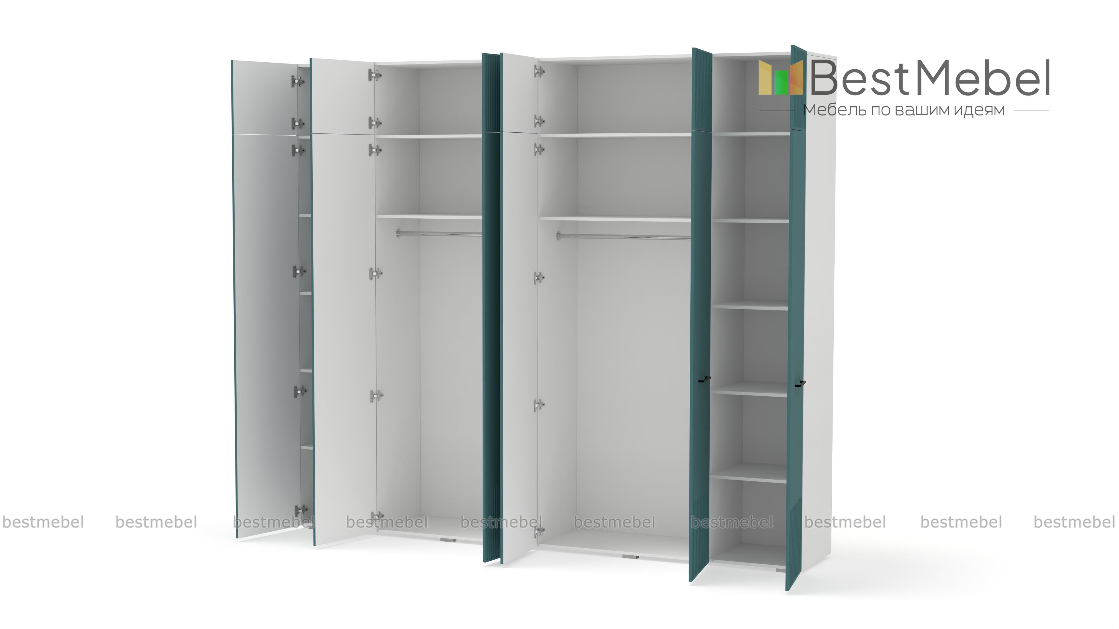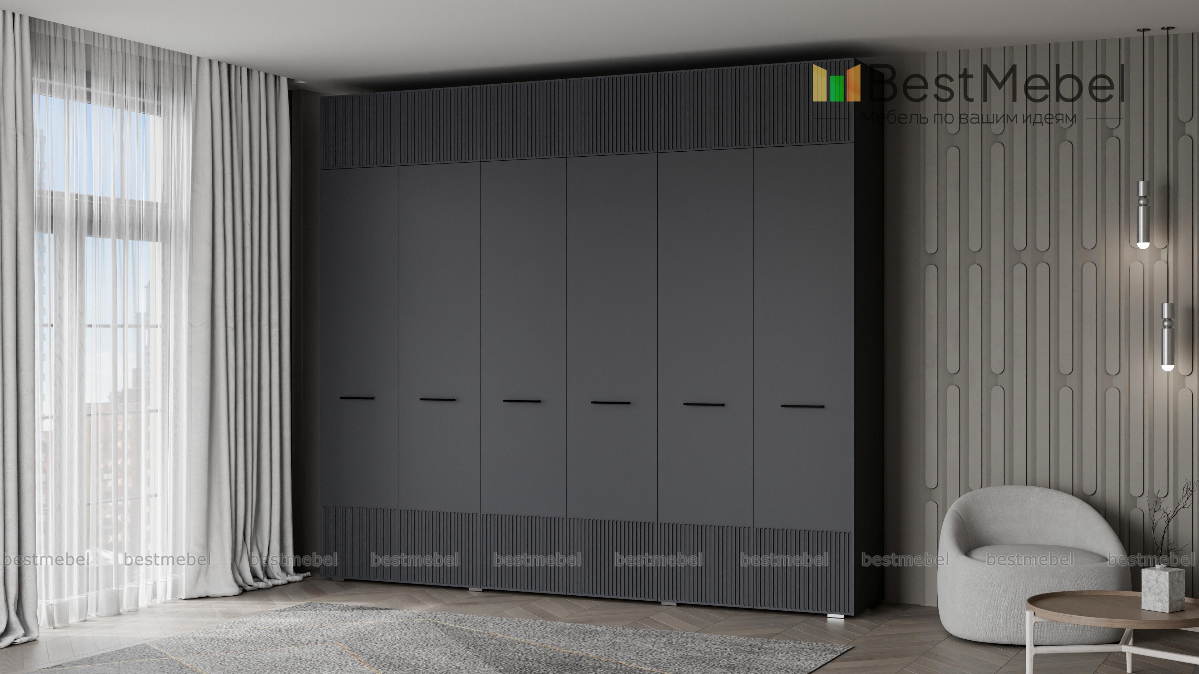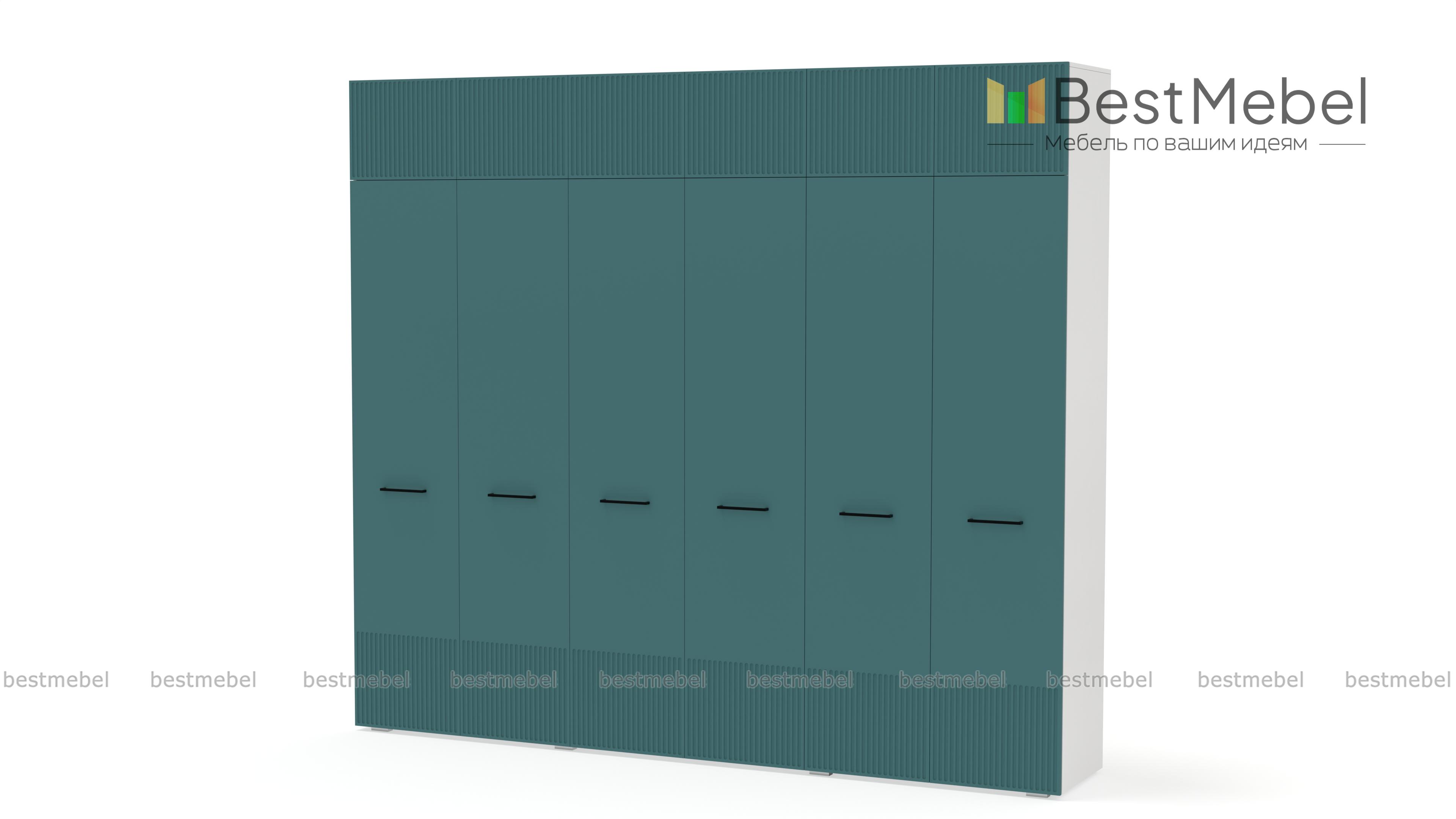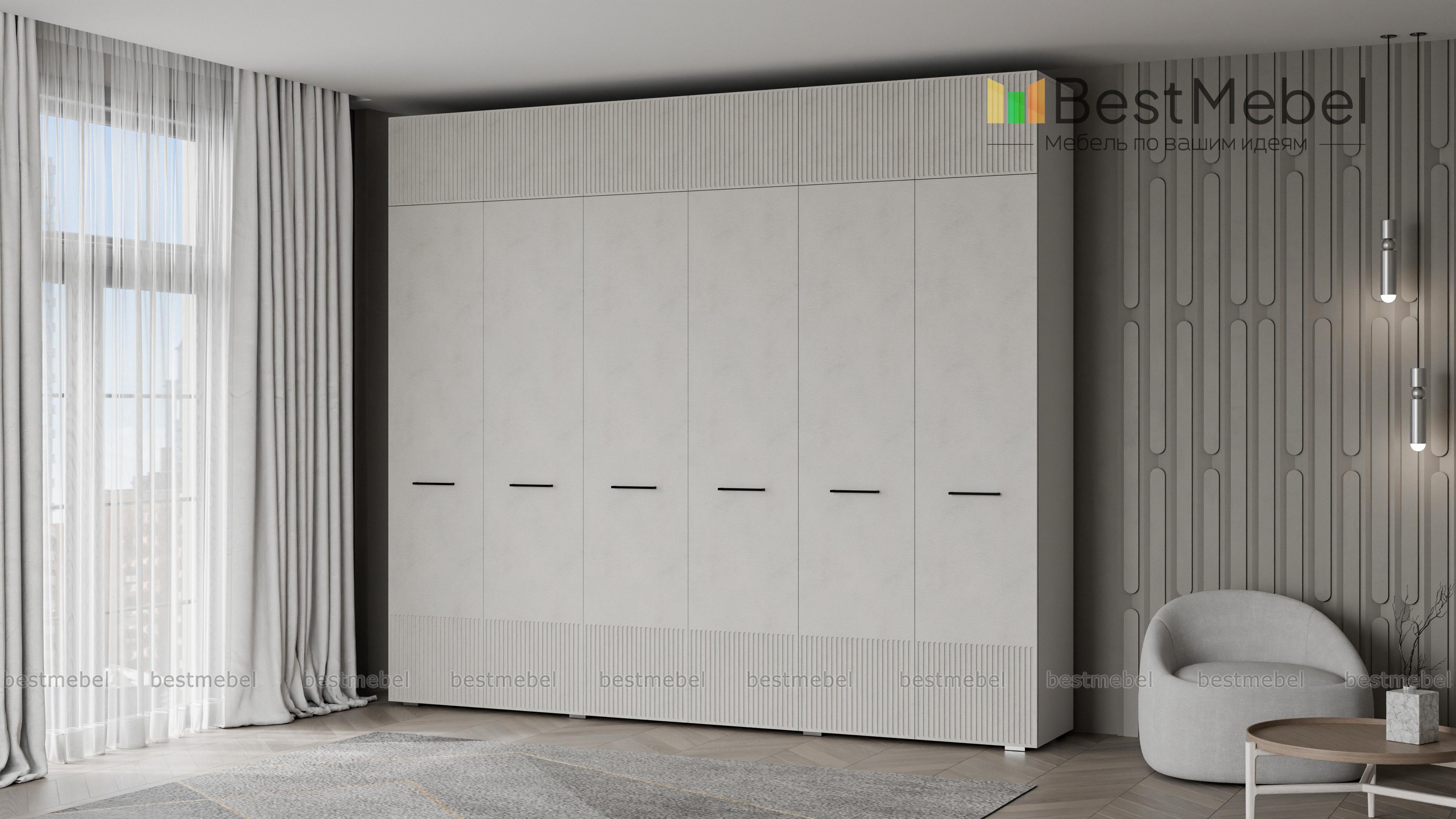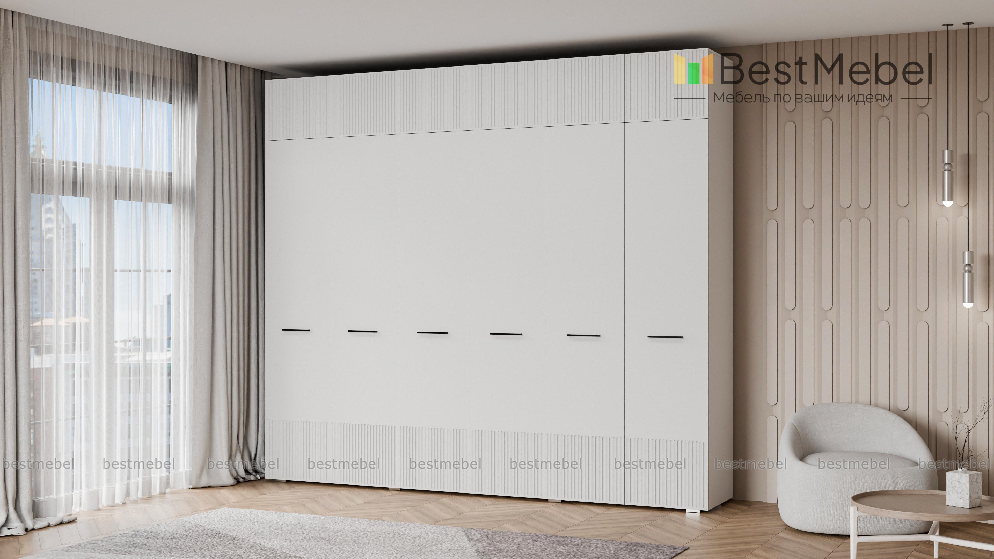 Шкаф распашной Декарт 12 BMS — это вместительный современный гардероб с антресолью. В двух секциях с перекладинами и двух бельевых отделениях можно хранить одежду на вешалках и сложенные вещи, а то, что вы редко используете, убрать на верхние полки. Светлый, рифленый по низу и верху фасад шкафа оснащен стильными поперечными ручками. Купить шкаф распашной Декарт 12 BMS вы сможете на сайте нашего интернет-магазина с изготовлением по индивидуальным размерам.