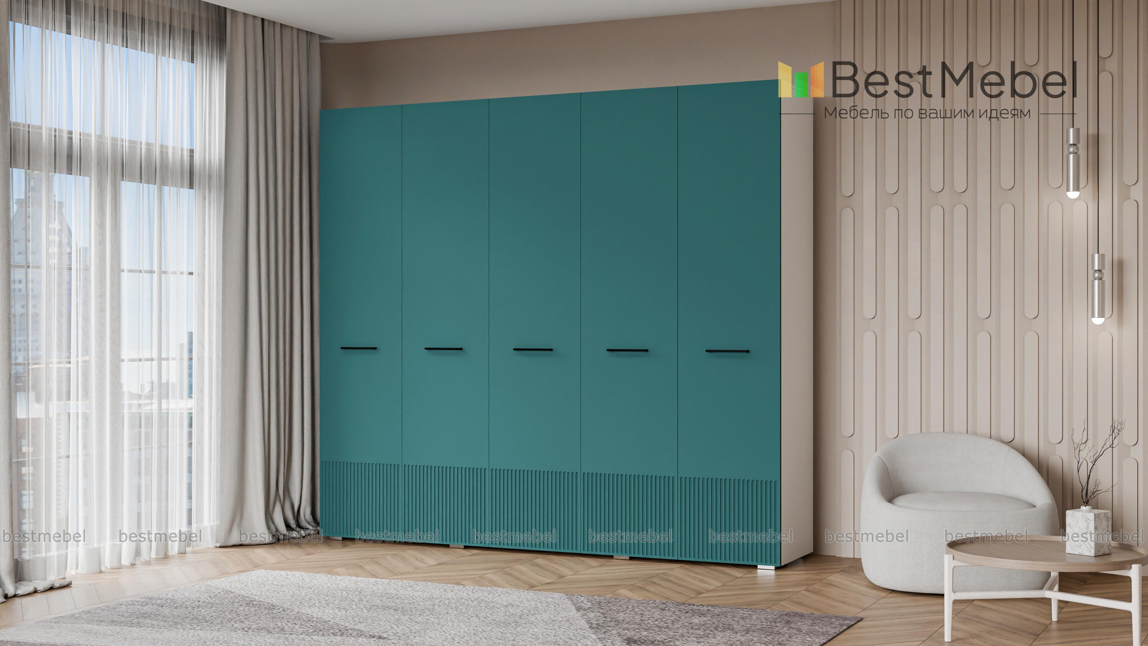 Шкаф распашной Декарт 5 BMS сочетает простую традиционную форму и актуальный дизайн. На сплошном светлом фасаде из МДФ выделяются поперечные ручки-скобы и фрезерованный рельеф, создавая визуально легкую конструкцию. Пятидверный гардероб позволяет организовать хранение с помощью пары штанг, вместительных верхних и бельевых полок. Купить шкаф распашной Декарт 5 BMS в удобном размере и любых оттенках из каталога вы сможете на сайте нашего интернет-магазина.