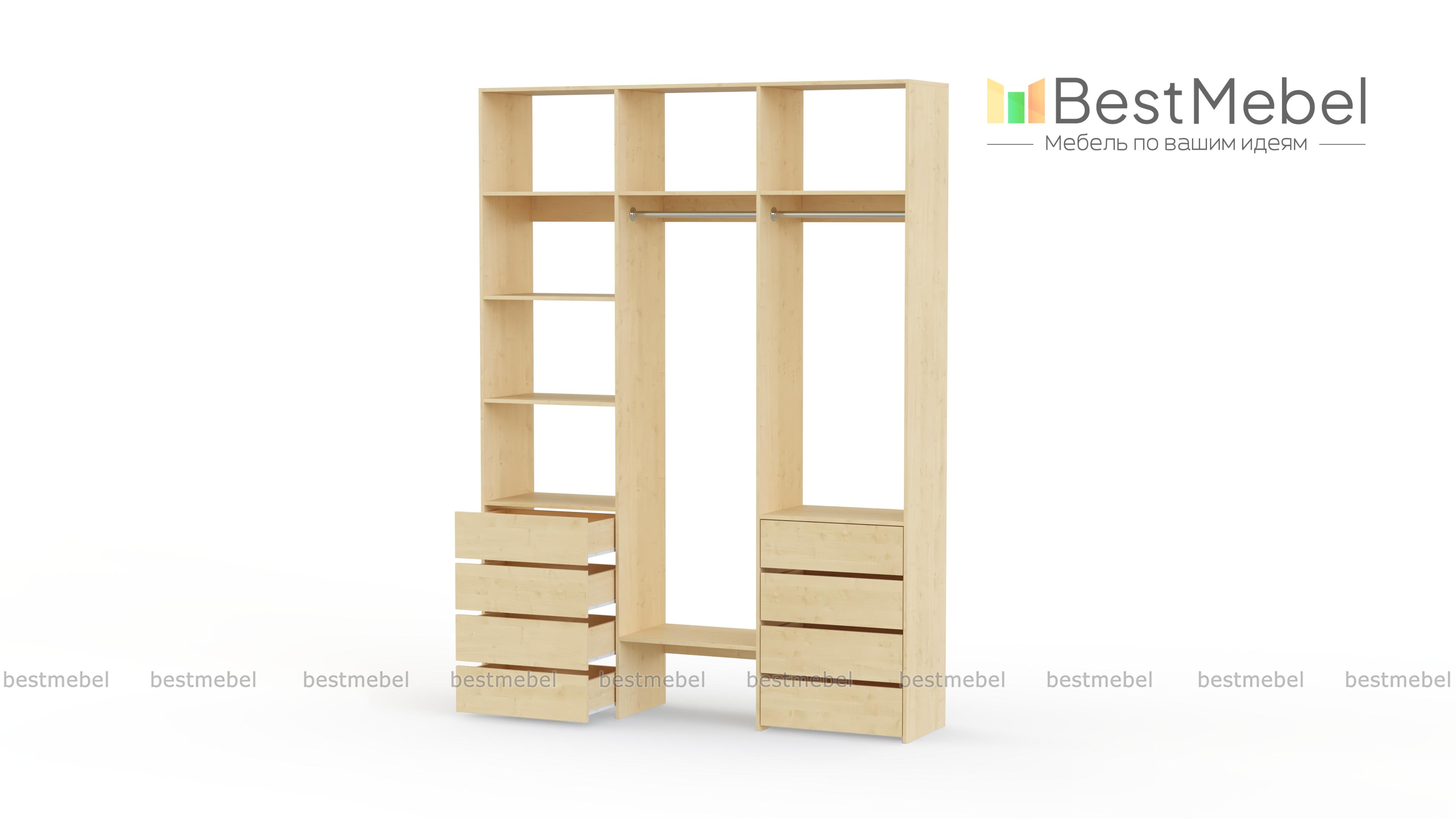 Стеллаж для одежды Мирта 11 BMS оснащен полками, двумя перекладинами для вешалок с одеждой и выдвижными ящиками, в которых удобно хранить текстиль и сезонные аксессуары. Трехсекционная конструкция из ЛДСП отличается прочностью, а лаконичный дизайн подходит для разных по стилю интерьеров. Стеллаж поможет вам удобно организовать пространство, будь то гардеробная комната, прихожая или детская спальня. Купить стеллаж для одежды Мирта 11 BMS в необходимом размере и цвете приглашаем в наш интернет-магазин.