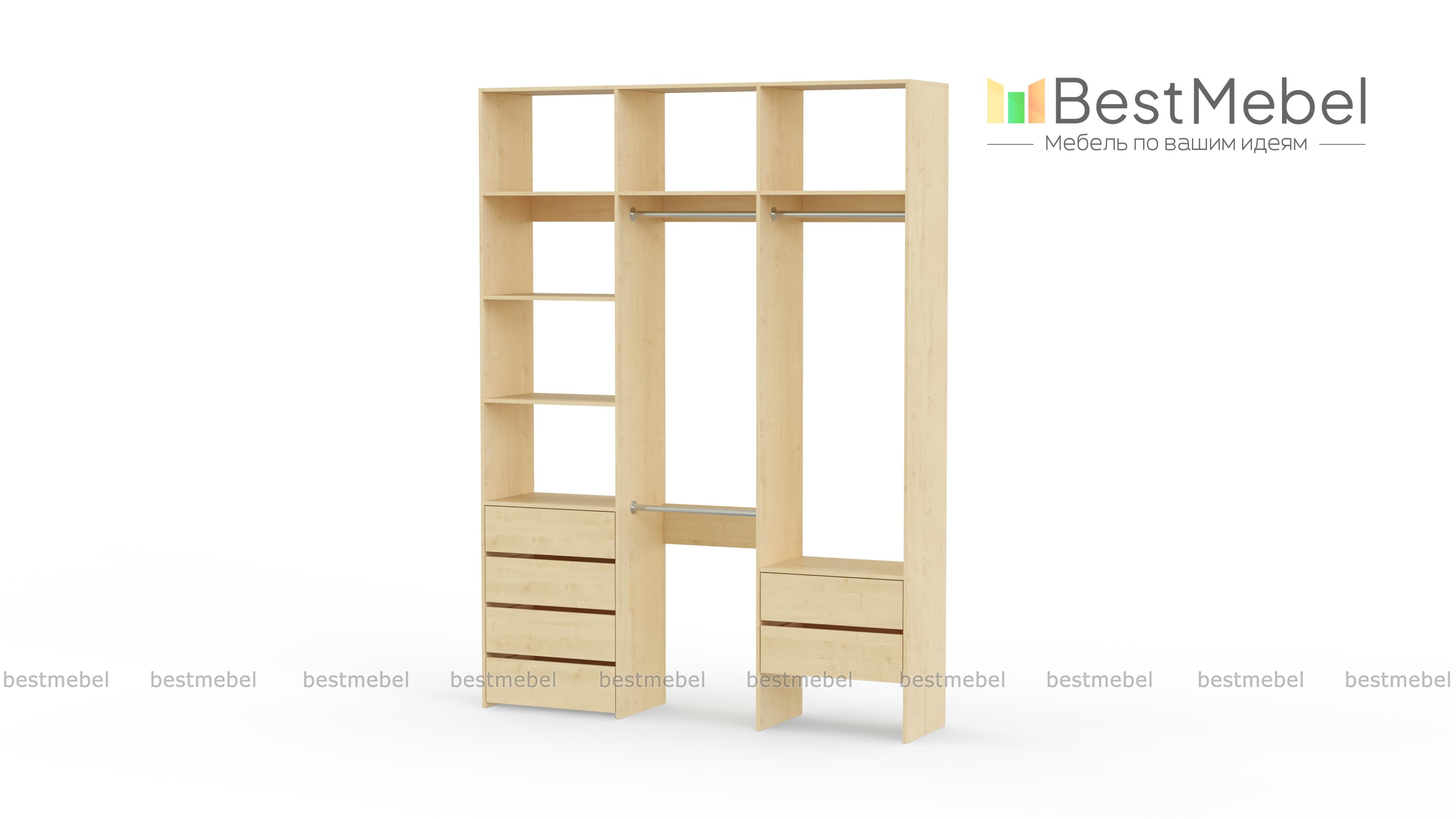 Стеллаж для одежды Мирта 13 BMS – это удобство пользования, надежность и стильный современный дизайн. На трех штангах будет аккуратно развешана одежда, а просторные полки и ящики вместят обувь, корзины и органайзеры с мелочами. Гладкие ламинированные поверхности просты в уходе, и стеллаж надолго сохранит привлекательный внешний вид. Купить стеллаж для одежды Мирта 13 BMS вы сможете на сайте нашего интернет-магазина, подобрав оптимальные размеры и цвет по каталогу.