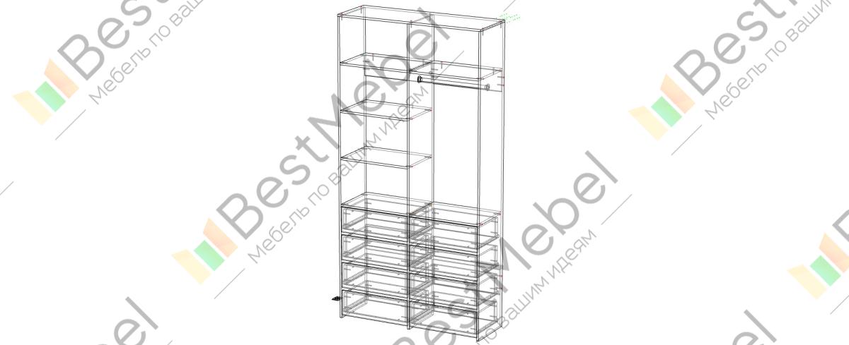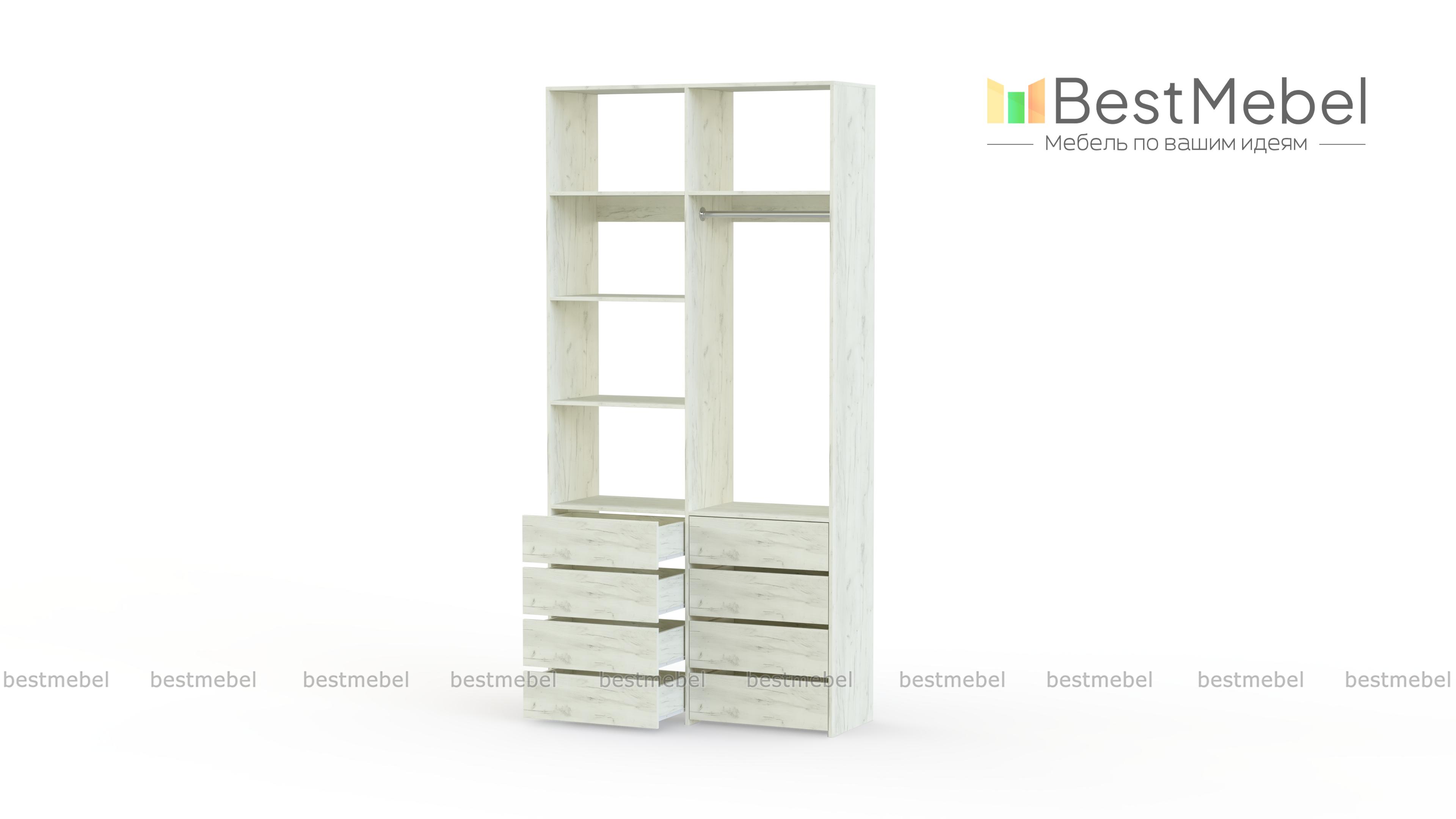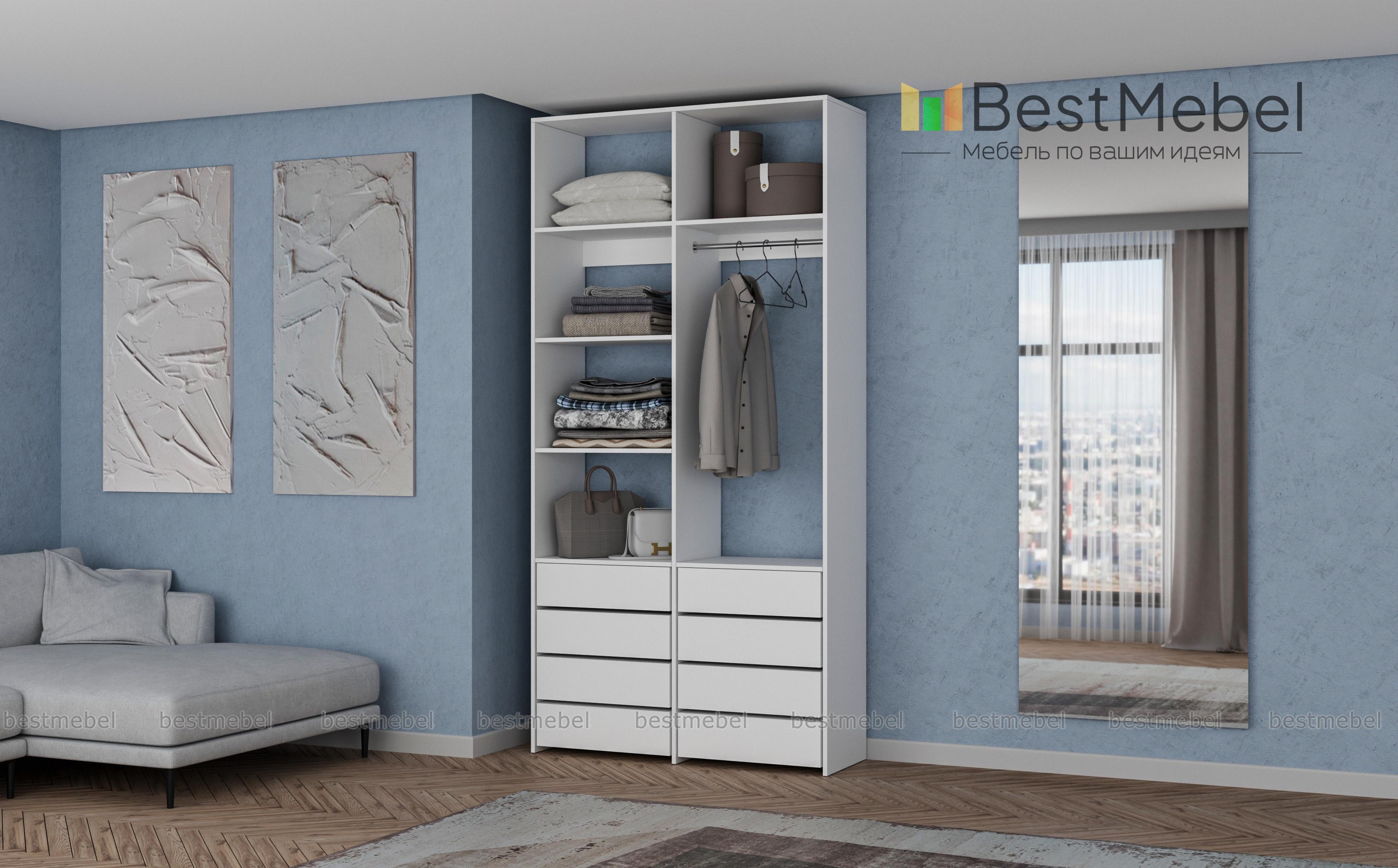 Стеллаж для одежды Мирта 3 BMS – функциональный и стильный предмет обстановки для вашего дома. Открытая конструкция позволяет разместить на виду повседневную одежду, коробки с обувью и органайзеры с мелочами, а для прочих вещей предусмотрены два ряда выдвижных ящиков. Прочность и долговечность стеллажу гарантируют материалы и фурнитура высокого качества. Купить стеллаж для одежды Мирта 3 BMS вы сможете в нашем интернет-магазине с изготовлением по индивидуальным размерам.