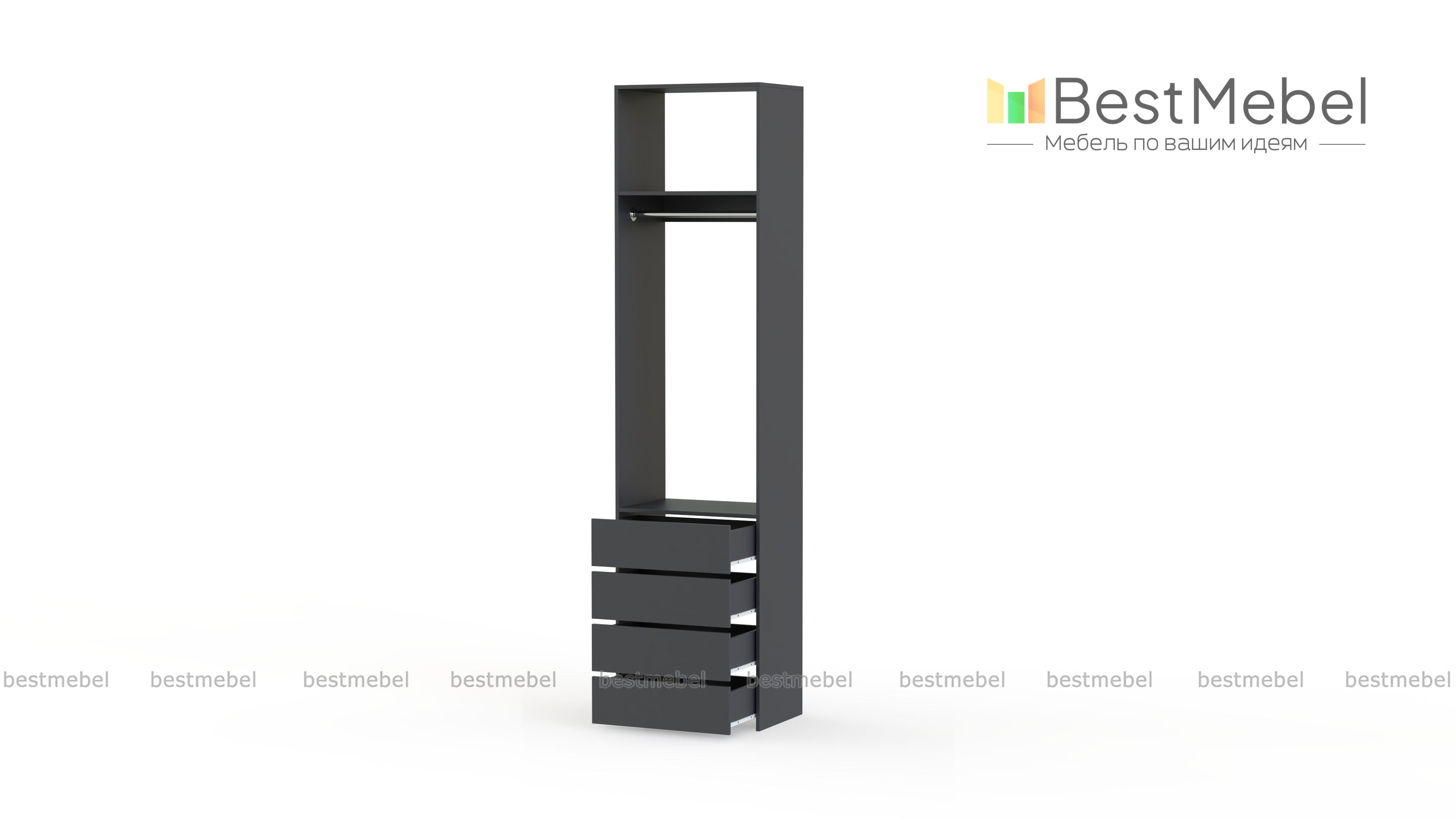 Стеллаж для одежды Мирта 32 BMS позволит вам эффективно использовать даже небольшое пространство. Для удобного доступа к одежде и обуви открытая конструкция оборудована металлической штангой, верхней полкой и четырьмя выдвижными ящиками. Лаконичный дизайн без декора и накладной фурнитуры легко сочетать с разными по стилю интерьерами. Купить стеллаж для одежды Мирта 32 BMS вы сможете на сайте нашего интернет-магазина в необходимом размере и оттенке.