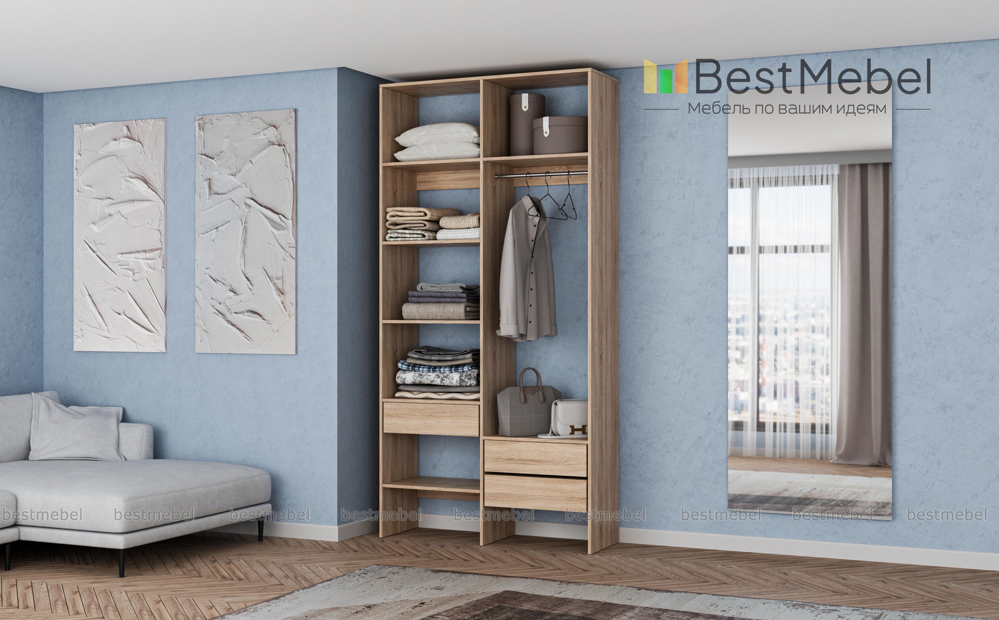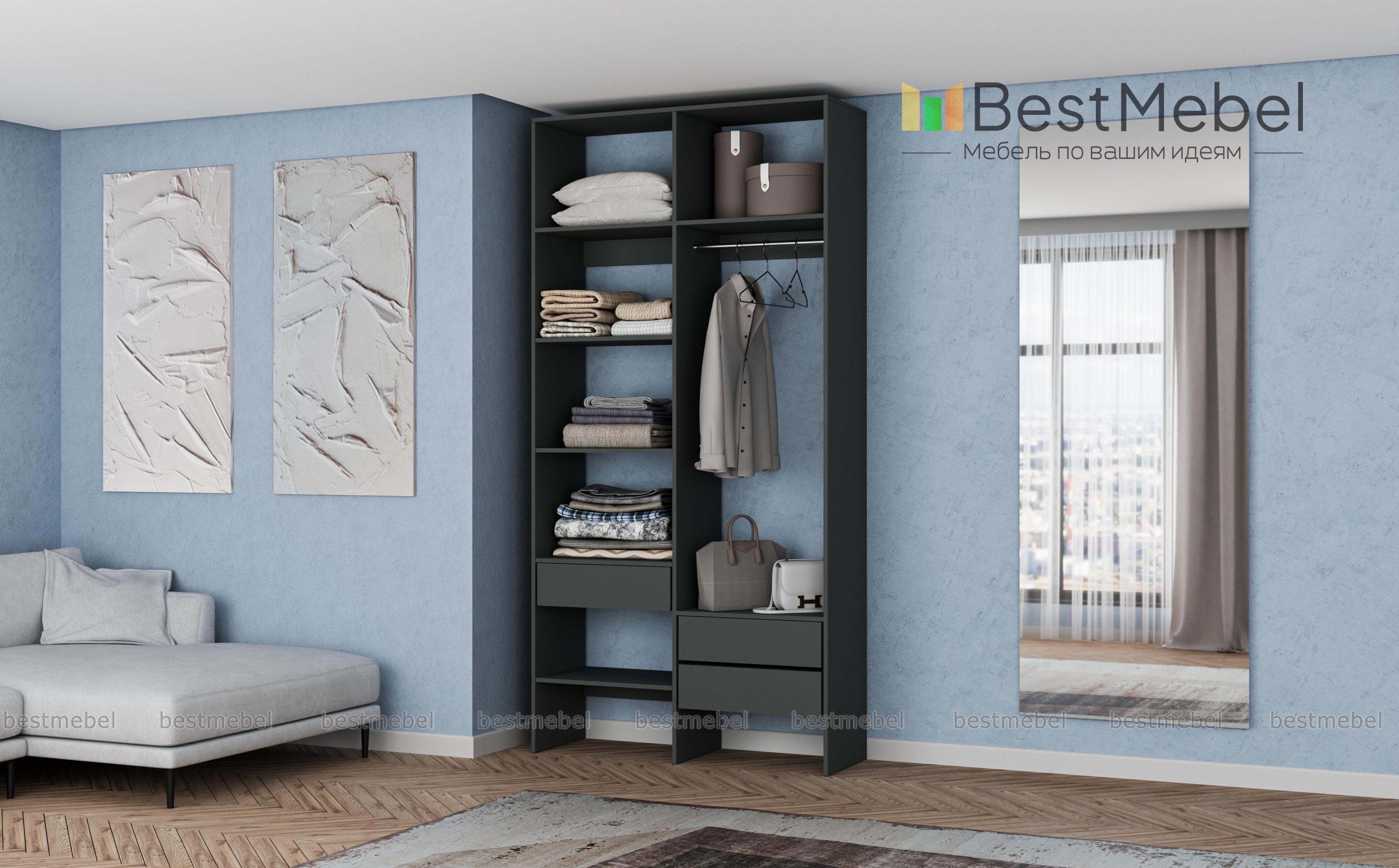 Стеллаж для одежды Мирта 5 BMS будет востребован дома и в торговом зале, помогая рационально организовать хранение. Открытые полки и ящики расположены на разных уровнях для вашего удобства, а платяная секция позволяет развесить как рубашки, так и длинные пальто и платья. Выполнена компактная двухсекционная конструкция из экологичного современного материала – ламинированной ДСП. Купить стеллаж для одежды Мирта 5 BMS в любом размере и оттенке из каталога приглашаем к нам в интернет-магазин.