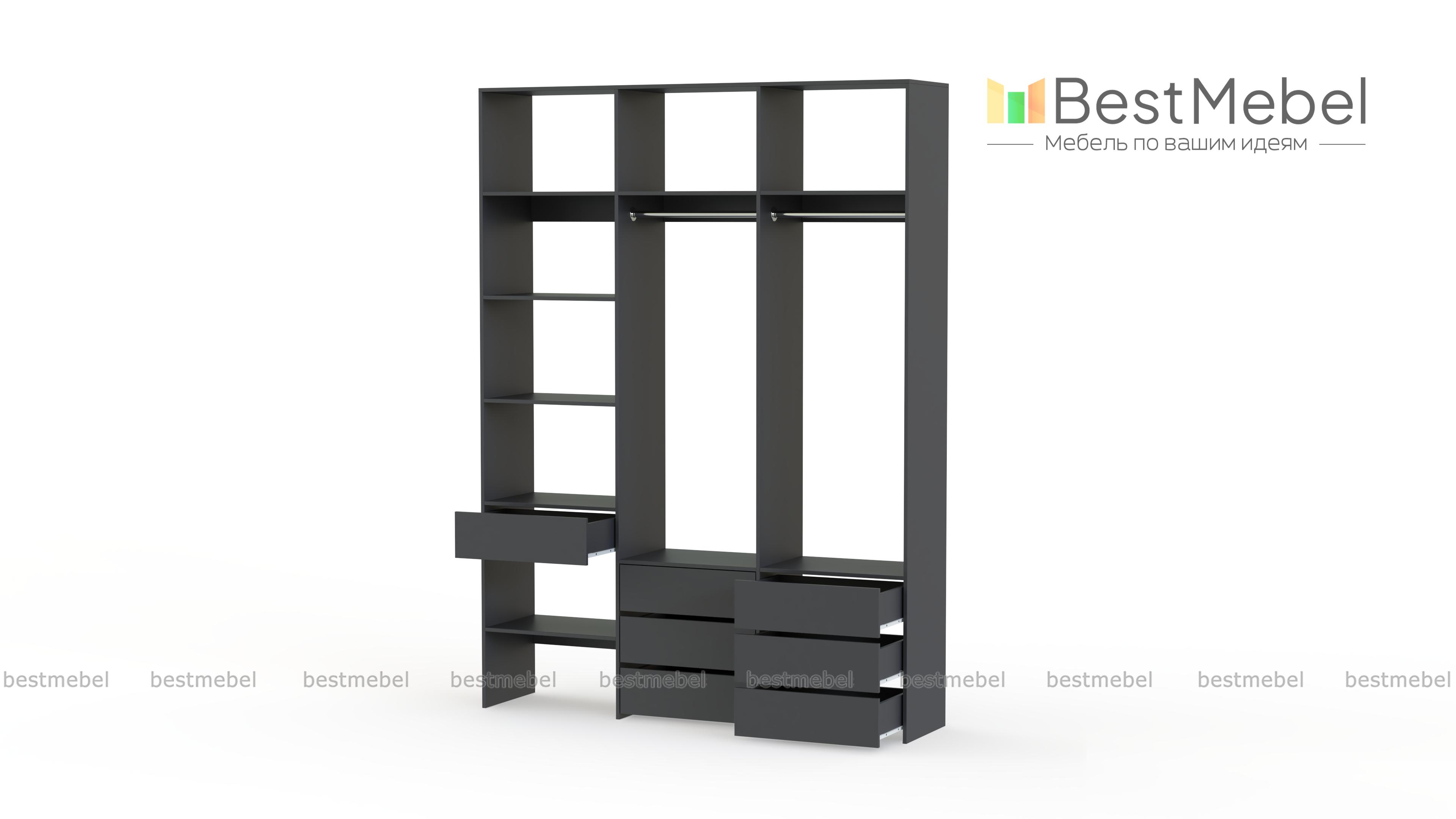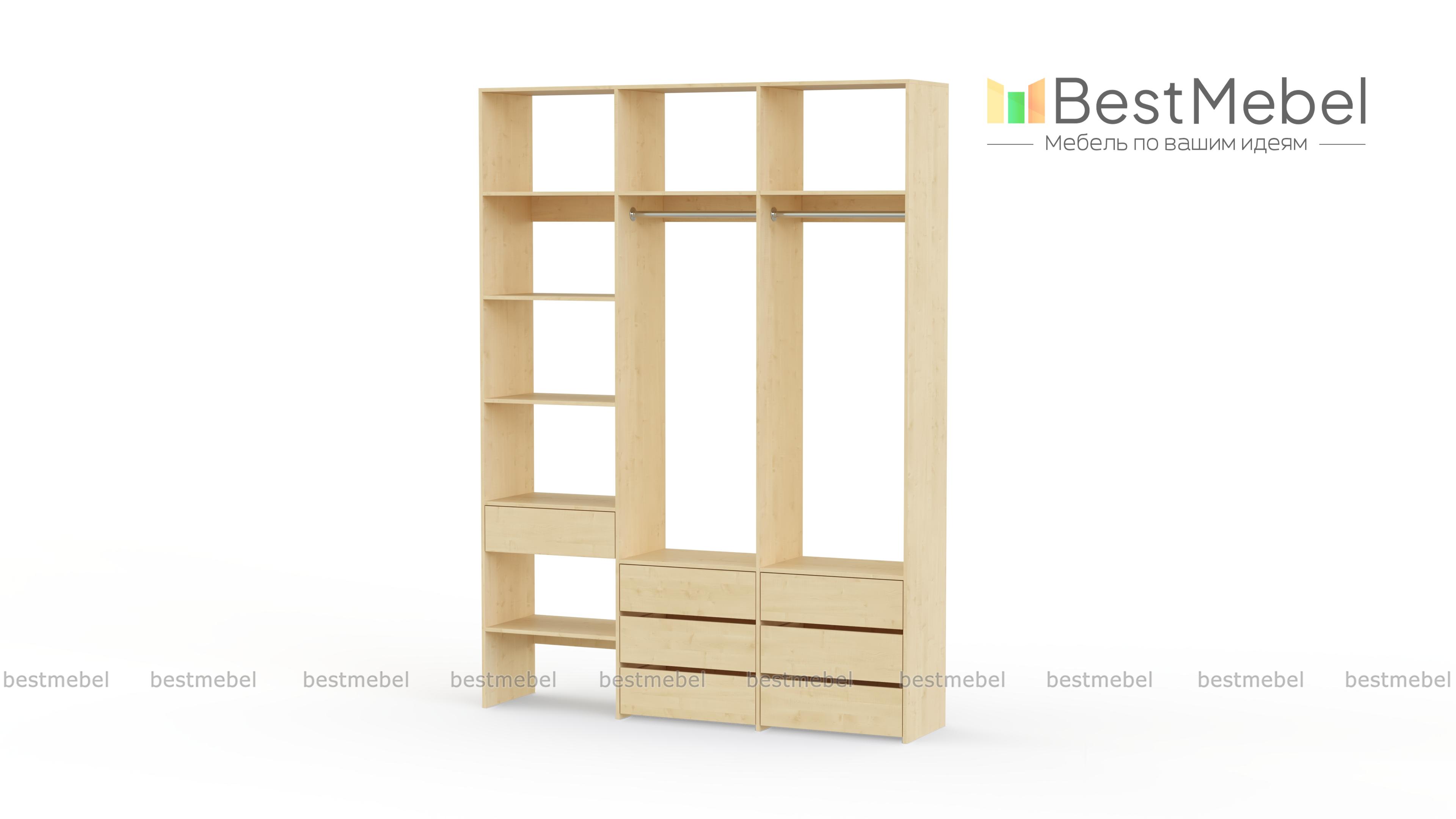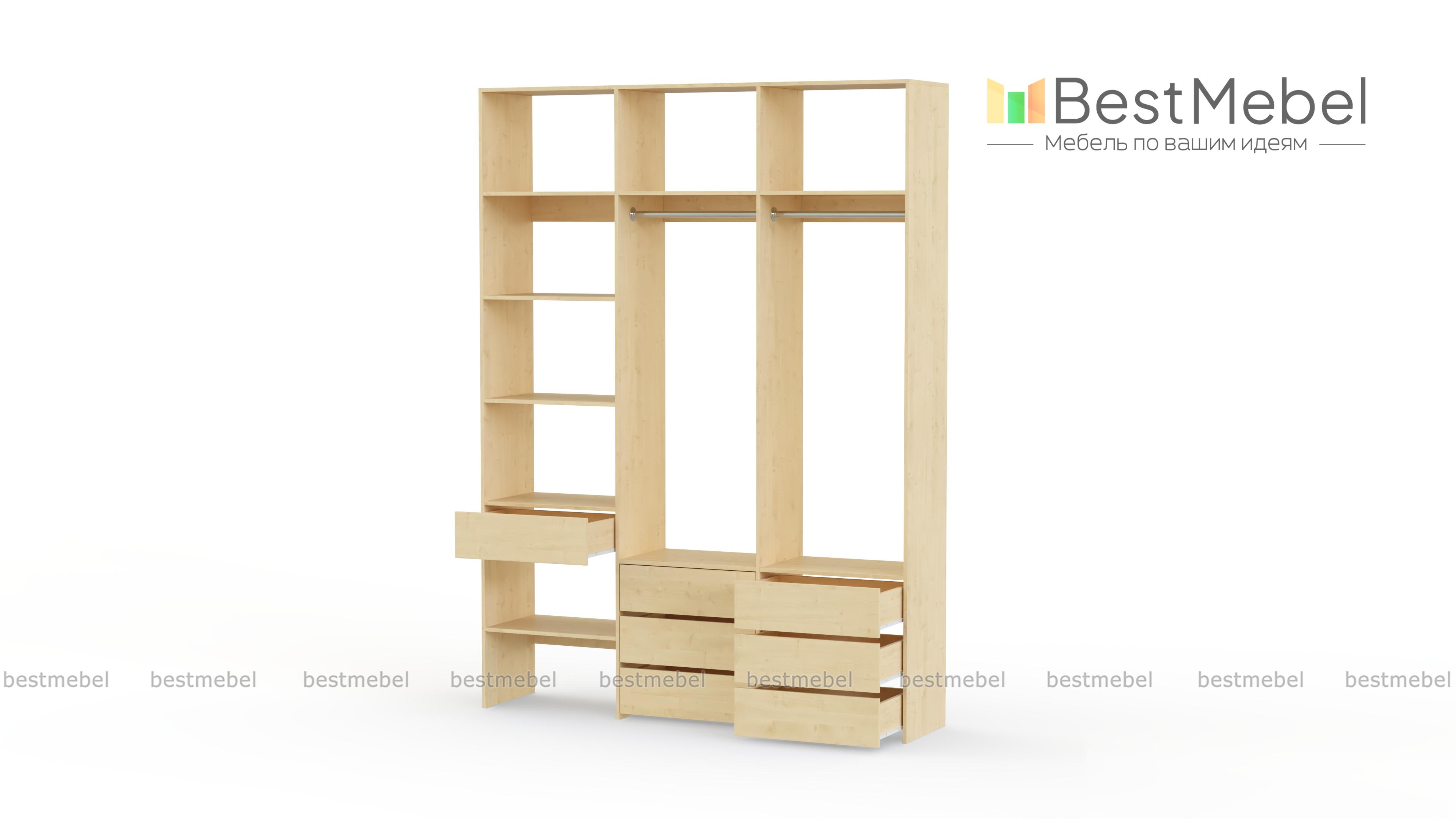 Стеллаж для одежды Мирта 52 BMS оборудован не только двумя штангами, но и расположенными на разных уровнях выдвижными ящиками и полками. Конструкция позволяет вам бережно разместить вещи на вешалках и трикотаж, коробки с обувью и корзины со всевозможными мелочами. Стеллаж выполнен из прочной ЛДСП, что обеспечивает ему долгий срок службы и эстетичный внешний вид. Купить стеллаж для одежды Мирта 52 BMS вы сможете в нашем интернет-магазине, подобрав размеры и цвет по каталогу.