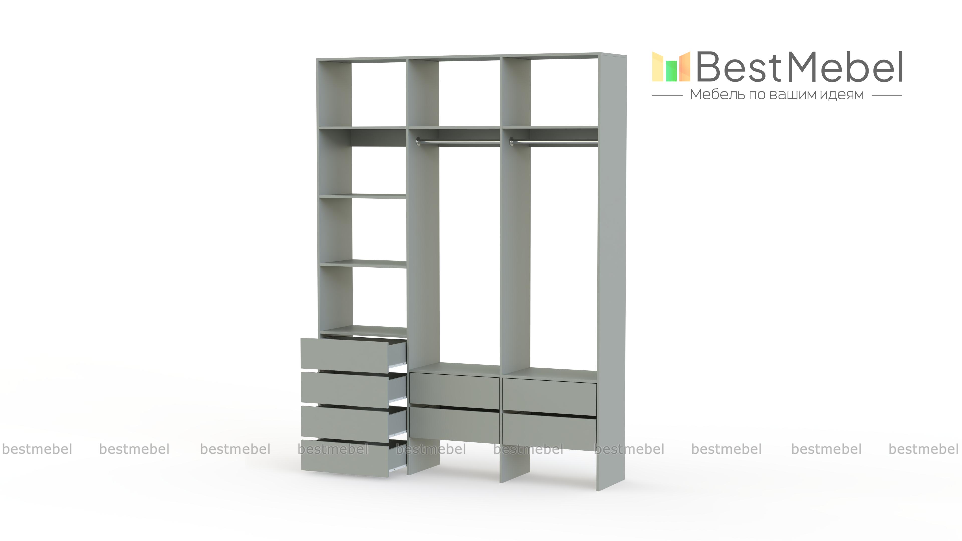 Стеллаж для одежды Мирта 54 BMS станет частью современной прихожей или гардеробной. Конструкция из ламинированной плиты имеет универсальный дизайн, надежна и функциональна. Система хранения трехсекционного стеллажа включает в себя две платяные штанги, ящики для белья и мелочей, ряд верхних и боковых полок, а пространство под ящиками можно использовать для размещения обуви. Купить стеллаж для одежды Мирта 54 BMS приглашаем в наш интернет-магазин, подобрав нужные размеры и цвет по каталогу.