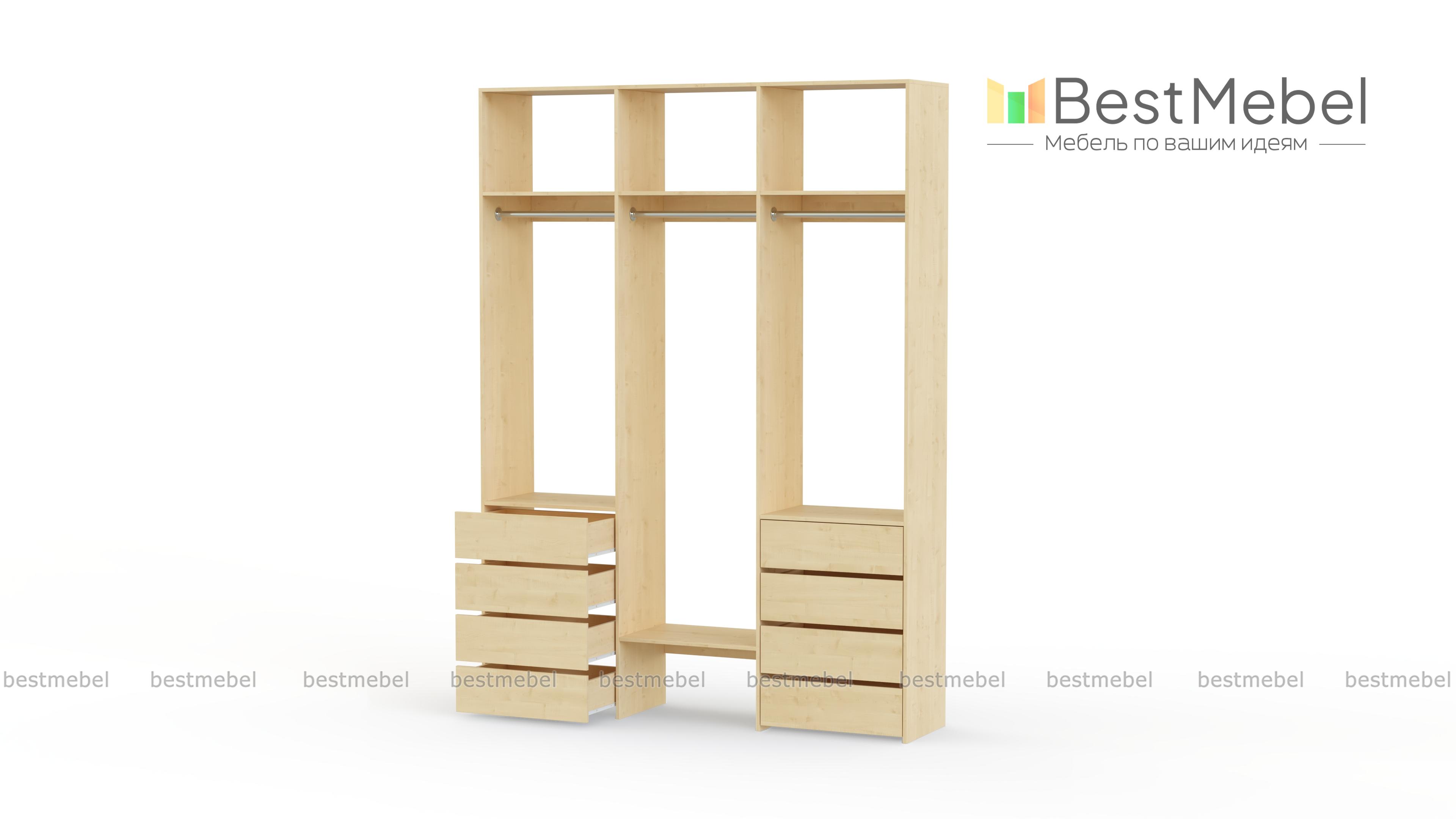Стеллаж для одежды Мирта 9 BMS поможет вам хранить в порядке одежду, коробки с обувью и всевозможные аксессуары. Система хранения стеллажа включает в себя три вместительные полки сверху, три платяные штанги и восемь выдвижных ящиков, расположенных в два ряда. Прочная конструкция из ламинированной плиты прослужит долго, сохраняя эстетичный внешний вид. Купить стеллаж для одежды Мирта 9 BMS вы сможете в нашем интернет-магазине в удобном размере и любом оттенке из каталога.