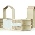 Стеллаж Эльф 4 BMS предназначен для меблировки детских садов и центров досуга, помогая зонировать игровую комнату. Угловая модель, стилизованная под домик, оборудована открытыми полками, глухими распашными отделениями и выдвижными ящиками для удобного хранения игрушек, книг, разнообразных учебных пособий и демонстрационных материалов. Ламинированные поверхности просты в уходе и сохранят эстетичный вид на протяжении всего срока службы. Купить стеллаж Эльф 4 BMS вы сможете в нашем интернет-магазине, подобрав цветовое решение.