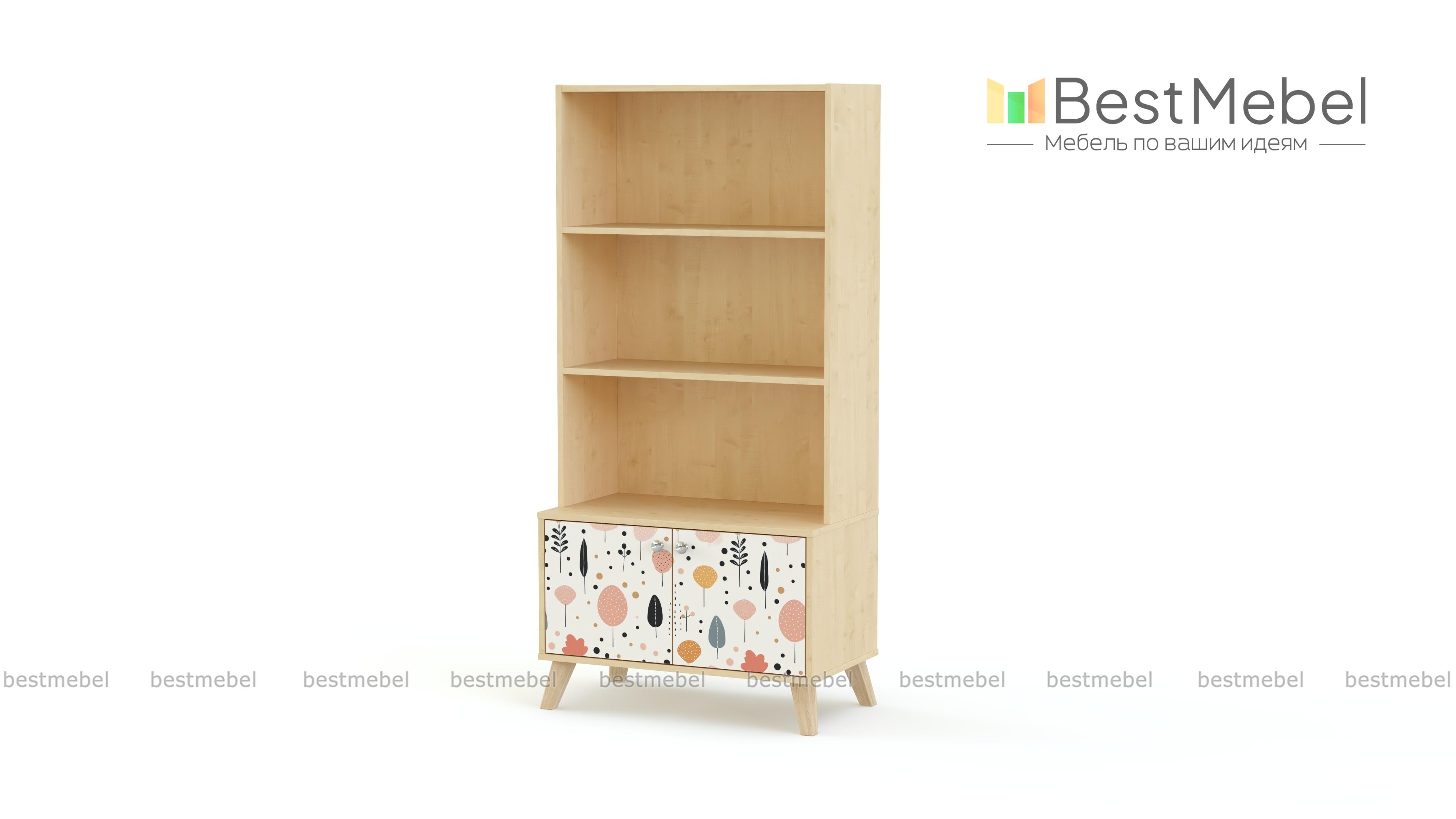Стеллаж Эльза 1 BMS поможет удобно и красиво поставить книги, разместить игрушки и учебные пособия. Комбинированный стеллаж с открытыми полками и распашным модулем в основании имеет комфортную для ребенка высоту. Устойчивая благодаря скошенным сканди-ножкам конструкция выполнена из экологичной и прочной ламинированной ДСП, на фасаде — пастельный рисунок-фотопечать. Купить стеллаж Эльза 1 BMS вы всегда сможете в нашем интернет-магазине, по желанию изменив цвет и размеры.