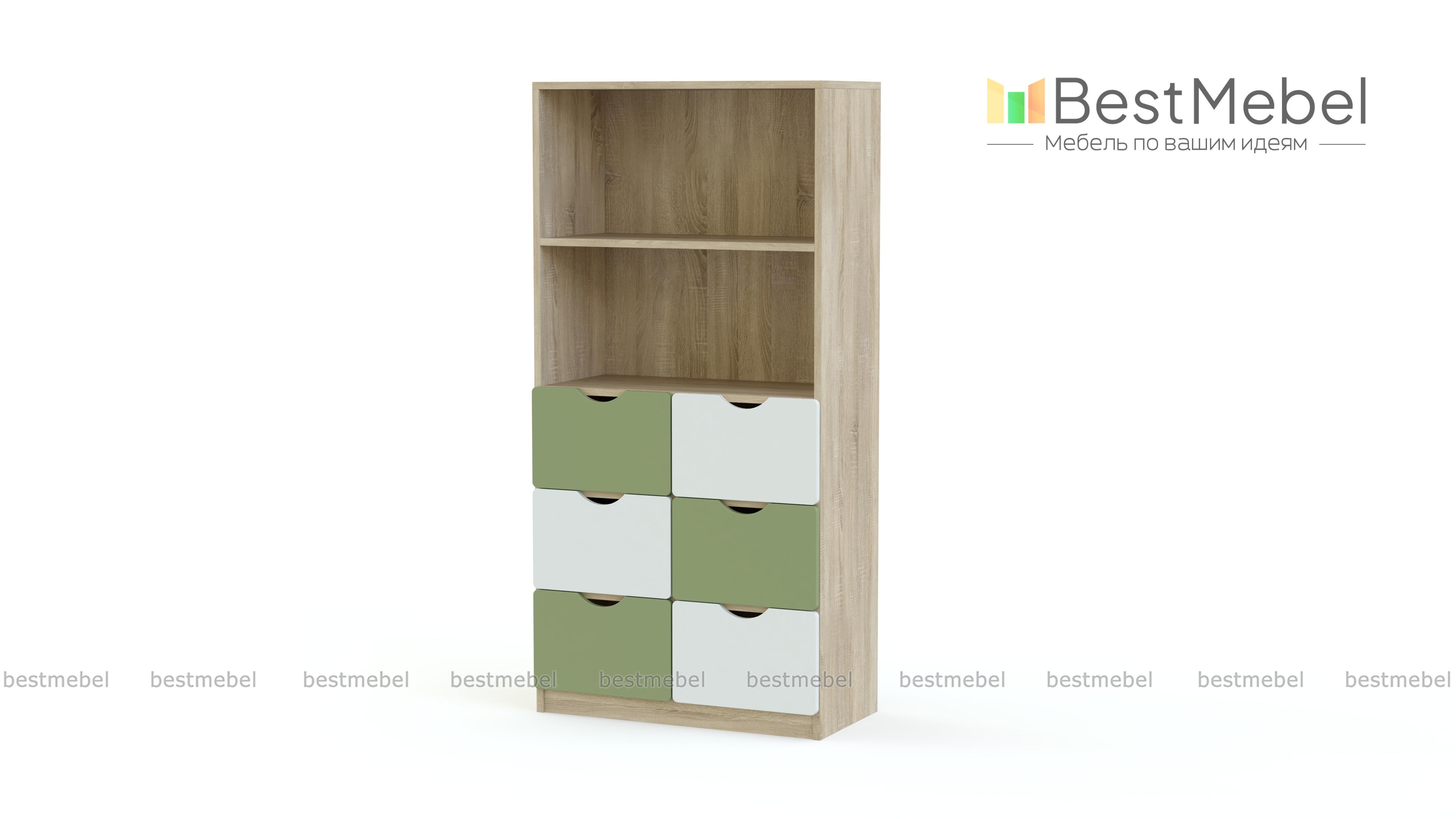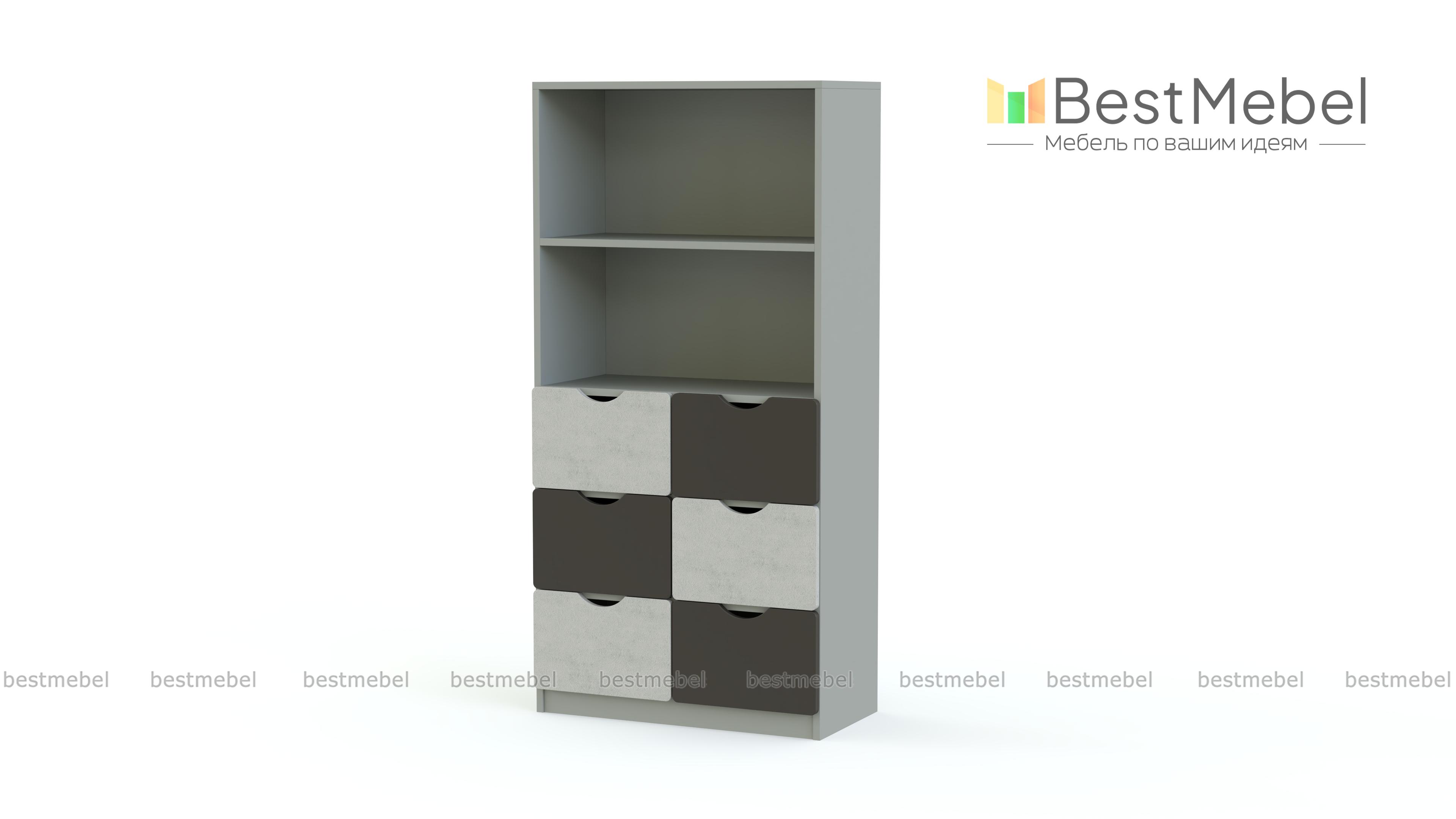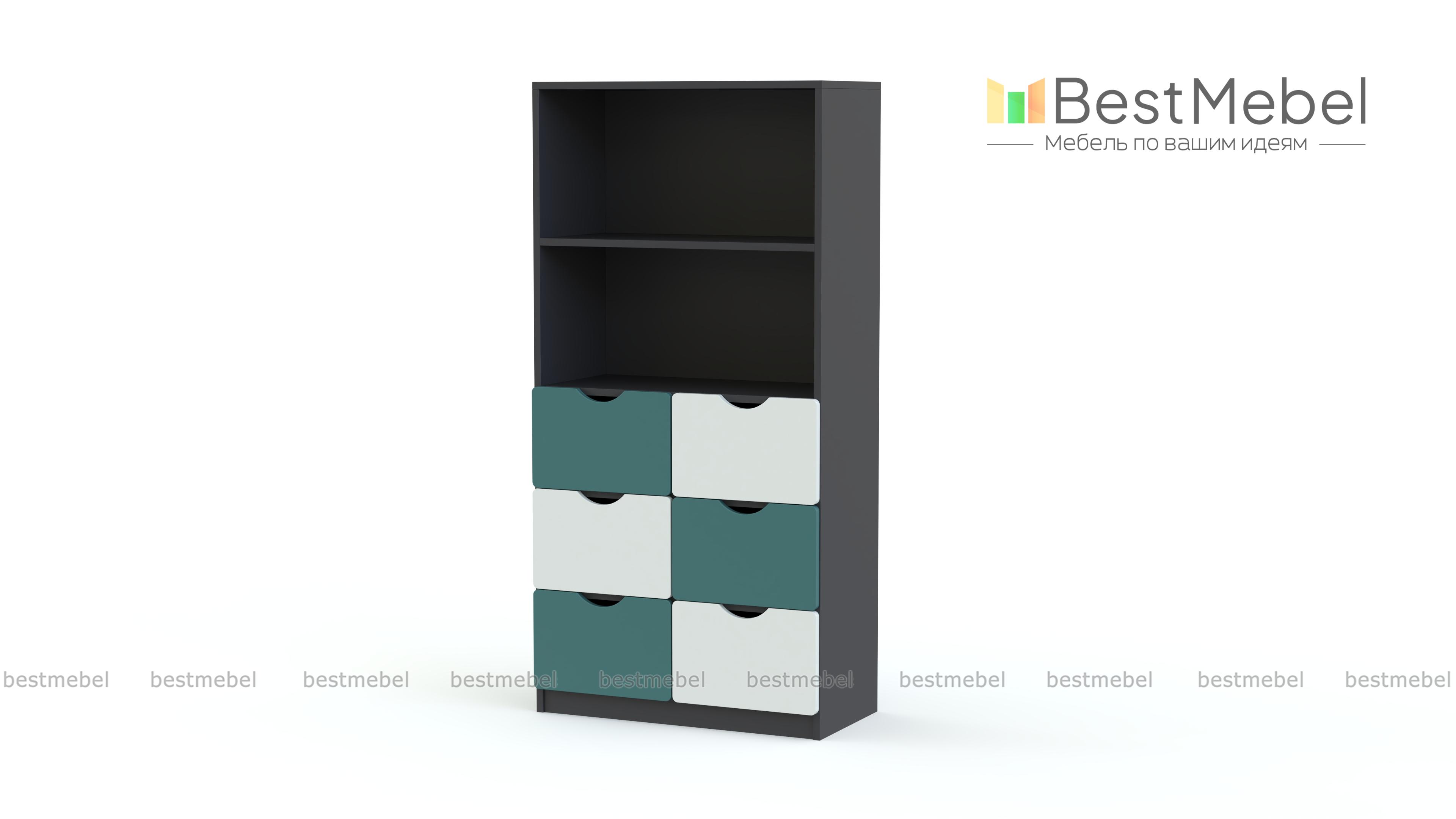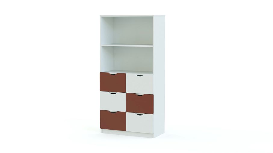 Стеллаж Пирит 3 BMS – недорогое и практичное решение для меблировки детской. Компактный яркий стеллаж легко впишется в помещения любой планировки и разместит игрушки и любимые книги в шести выдвижных ящиках и открытом, разделенном полкой отделении. В оформлении модели скомбинирован белый и яркие терракотовые вставки, фасады ящиков имеют удобные и безопасные для ребенка ручки-вырезы. Купить стеллаж Пирит 3 BMS вы сможете по доступной цене в нашем интернет-магазине.