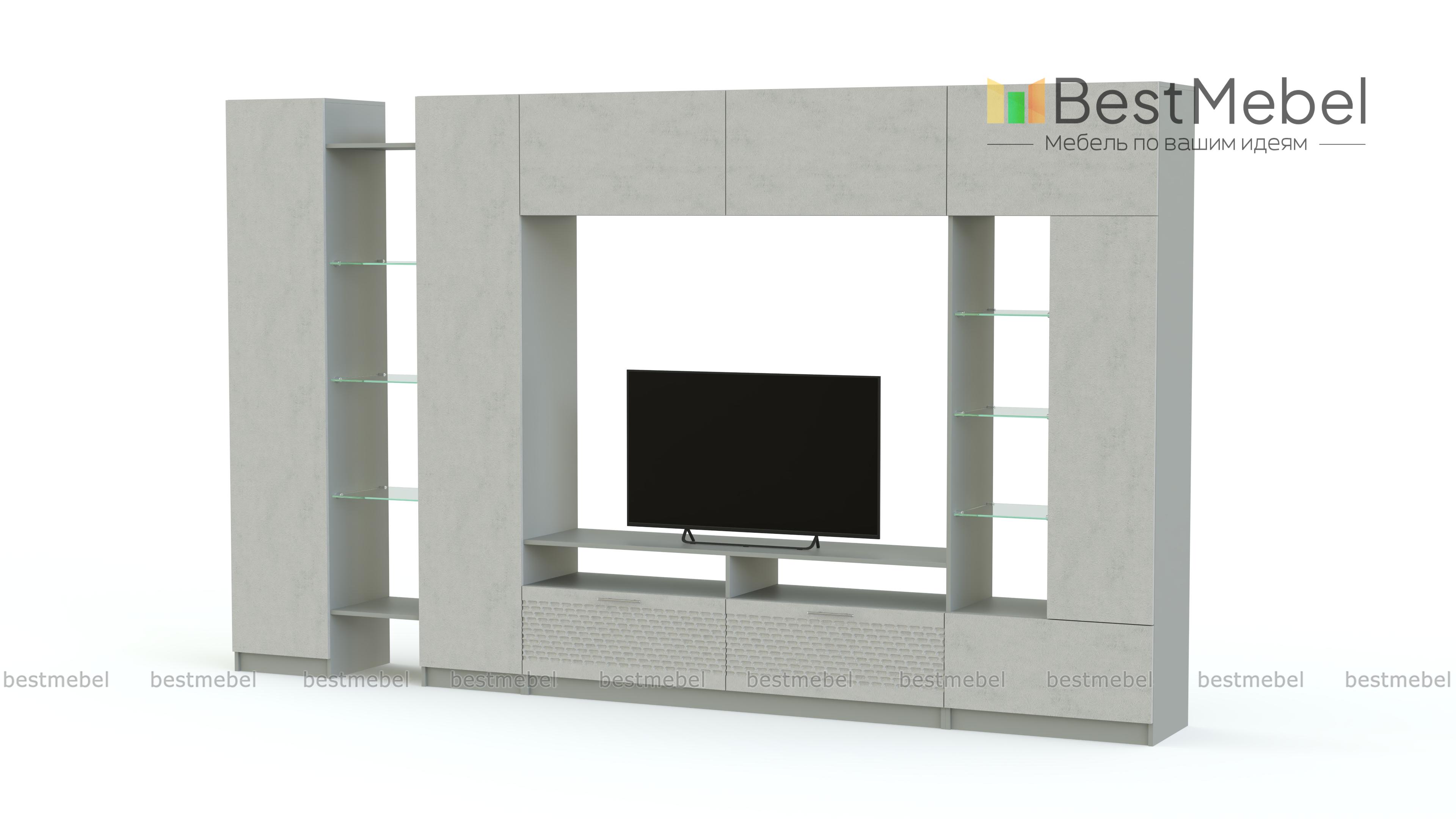 Стенка Купер 7.10-3D BMS отличается крупными габаритами и гармонично впишется в интерьер просторных современных гостиных. Эффектная модель с цветными матовыми фасадами, декорированными рельефным рисунком, оборудована разноплановыми элементами и позволит интересно оформить зону ТВ, разместить домашний текстиль, книги, декоративные предметы и множество мелочей. Композиция включает в себя пеналы для белья и одежды, стеллажи, комбинированную тумбу и антресольные секции. Купить стенку Купер 7.10-3D BMS приглашаем в наш интернет-магазин по доступной цене.