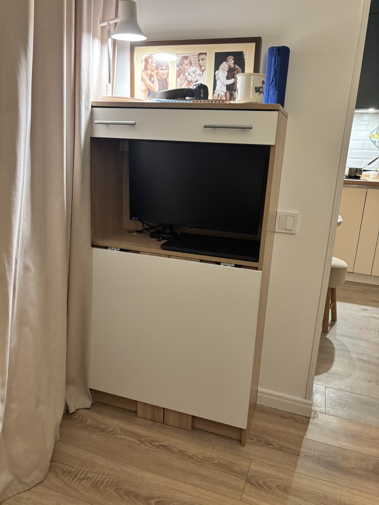 Хороший стол! Изготовили вовремя, очень удобно, что можно выбирать размеры, цвета, собирали самостоятельно, немного помаялись, потому что инструкции по сути нет, но справились!Кое-где доработали напильником: выпилы под плинтус сделали самостоятельно под размер и форму именно своего плинтуса, не стали ставить заднюю стенку снизу, чтобы не загораживать розетку, которая как раз там, с одной стороны в боковой панели у стены сделали небольшой выпил под шнур от лампы. Также важно понимать, что при стандартных размерах высоты, монитор 24” в полку не войдет! Даже у которого стойка регулируется по высоте и в самом нижнем положении - не войдет все равно. Если планируете ставить его туда - ставьте при заказе высоту больше стандартной и уточняйте высоту именно полки. Мы же решили этот вопрос покупкой кронштейна, который впилили прямо в столешницу (благо весь инструмент дома есть). По итогу на самом деле так даже лучше. В целом довольна очень, при очень скромных возможностях площади, которая у меня есть под рабочее место дома, при помощи этого чуда-стола я выжала из этой площади все! И в интерьер вписался как продолжение консоли под телевизором и остальной мебели. К качеству в целом, срокам изготовления и доставки претензий нет.