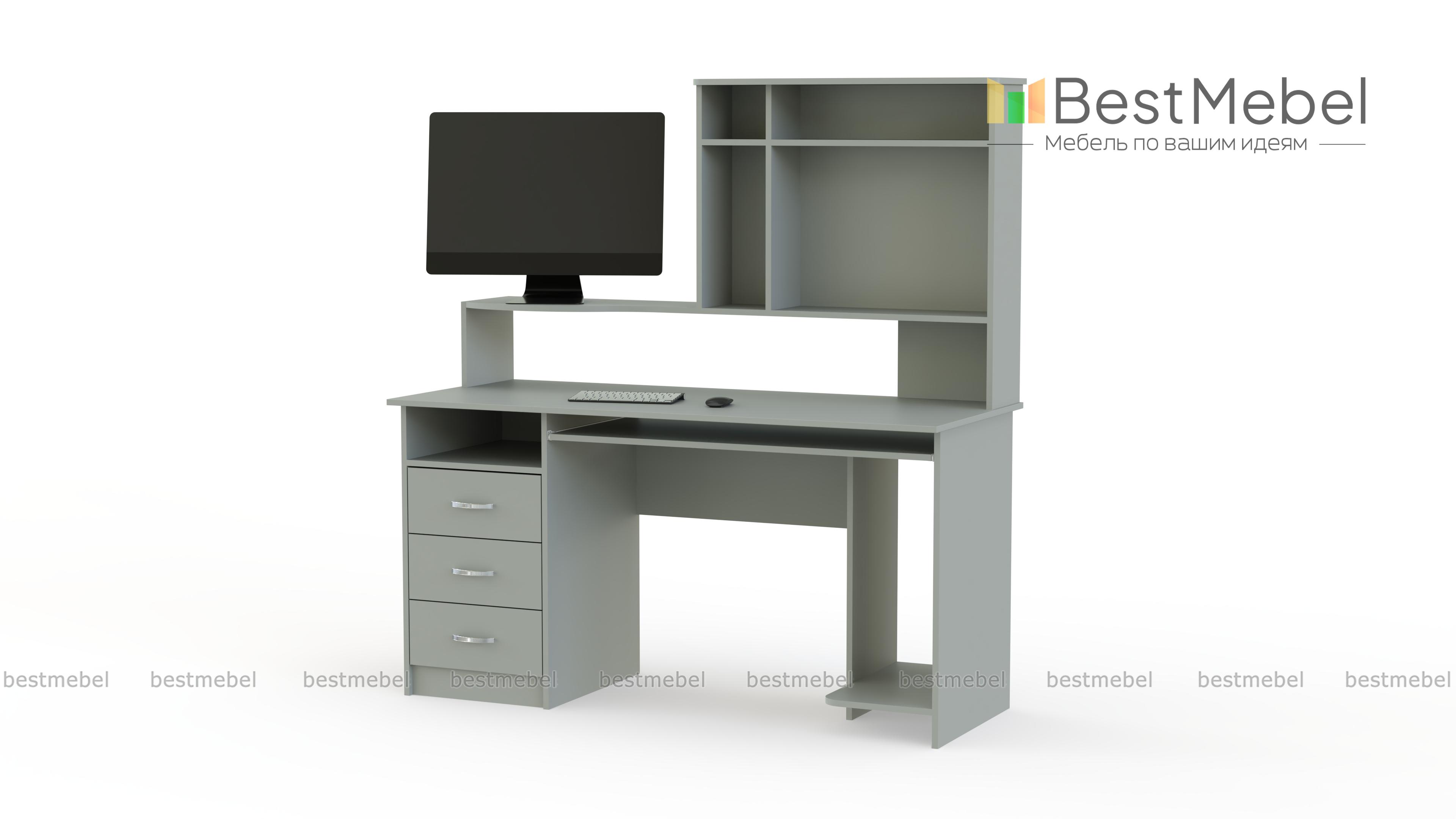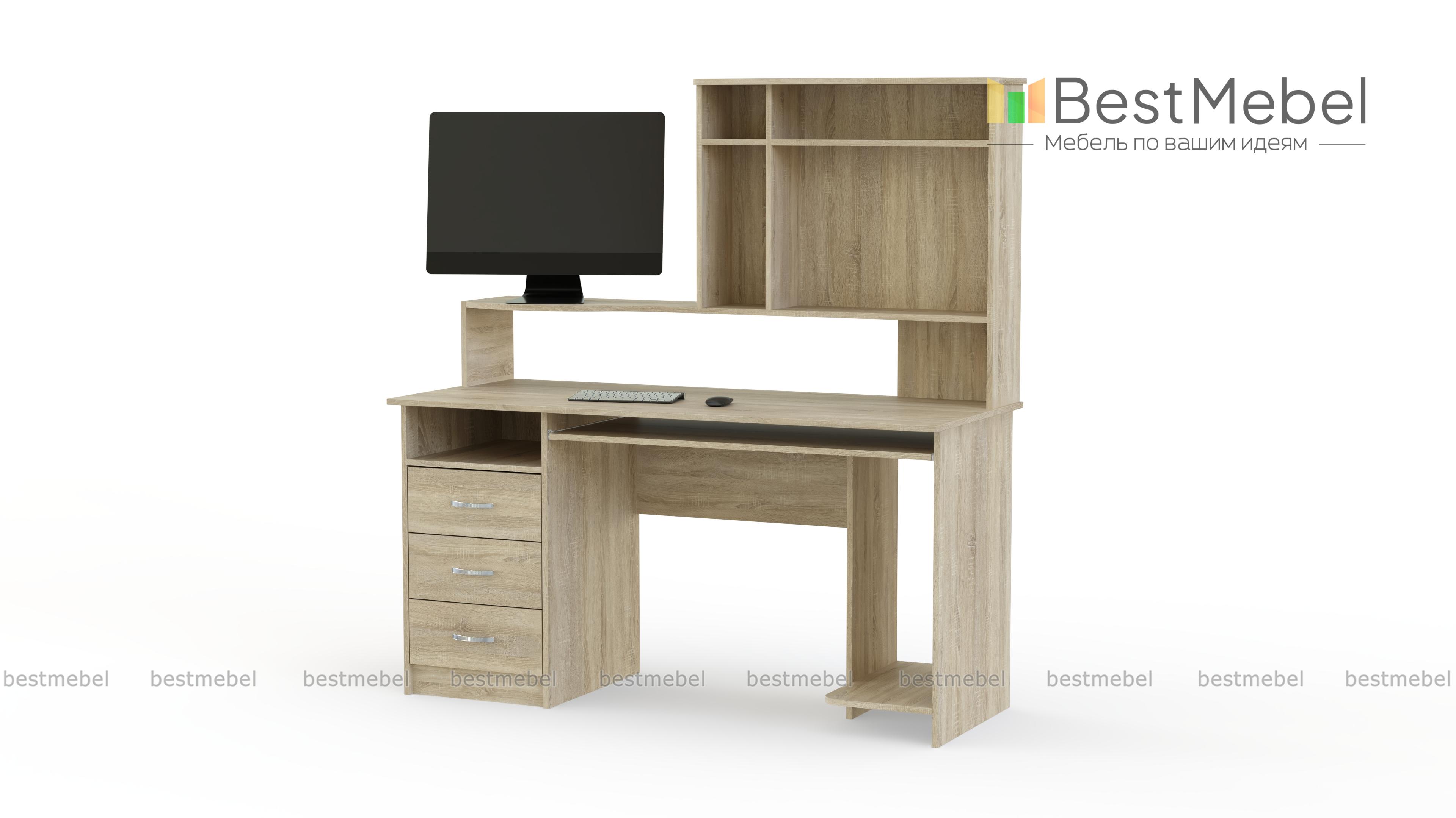 Этот стол отлично подойдет для комнаты подростка. Он имеет необходимые специальные места для удобного размещения компьютерной техники, и кроме этого с успехом может исполнять роль письменного стола. За счет специальной полочки для клавиатуры освобождается довольно большая рабочая поверхность. Стол компьютерный ПСК-6 имеет тумбу с тремя выдвижными ящичками и открытую полку для мелочей, учебников и тетрадей. Купить такую модель можно также для сотрудников офисов.