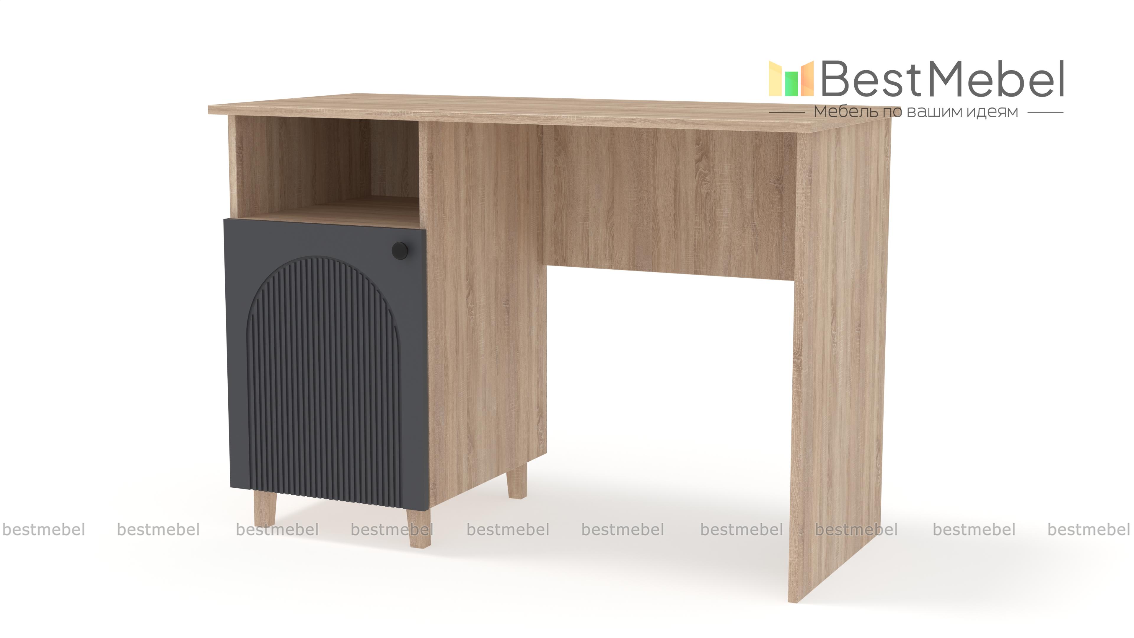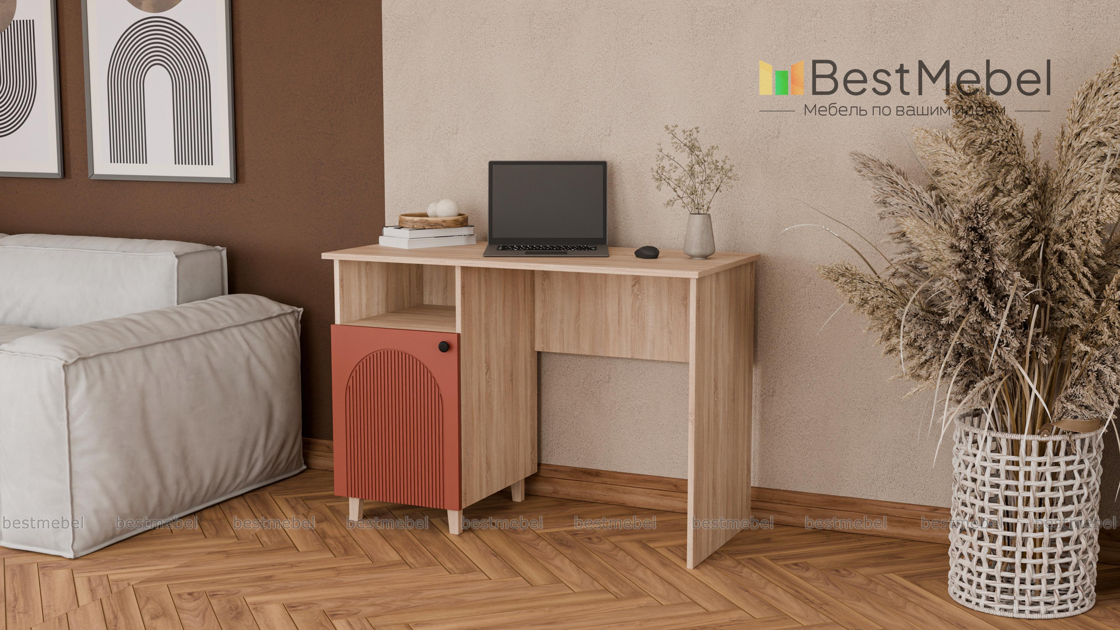 Письменный стол Рене 2 BMS поможет вам организовать комфортные условия для работы и учебы. Модель в современном дизайне с фрезерованным фасадом оборудована тумбой с высокими ножками, распашным отделением и нишей для бумаг. Широкая прямоугольная столешница удобна для размещения компьютера, работы с документами и творчества. Купить письменный стол Рене 2 BMS вы всегда сможете в нашем интернет-магазине с выбором оптимальных размеров, цвета и фурнитуры.