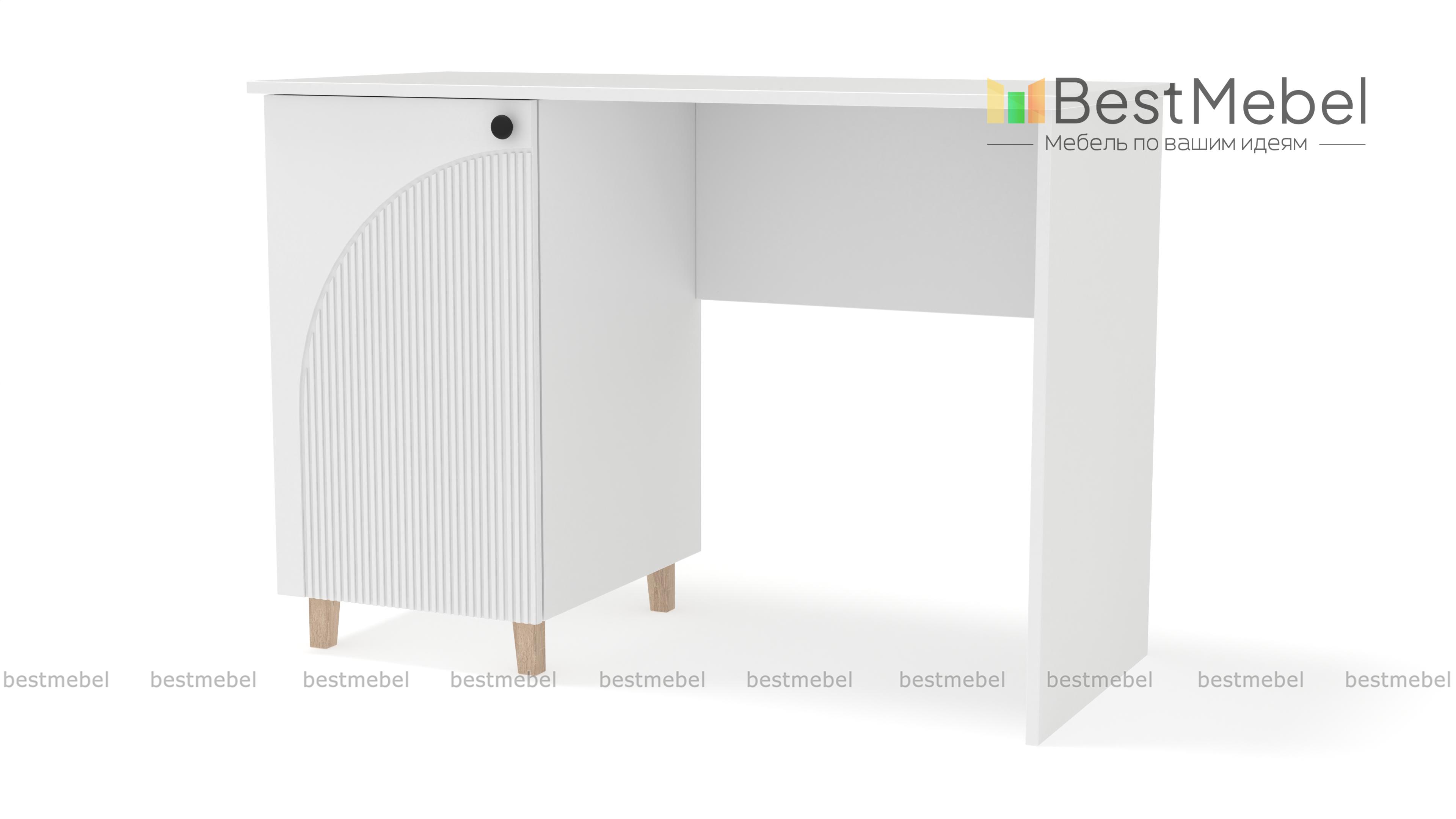 Стол письменный Вивьен 2 BMS — это классическая модель в современном дизайне, удобная для работы и учебы. Стол имеет просторную рабочую поверхность и слева оборудован распашной тумбой с полками для хранения рабочих материалов. Практичный корпус стола изготовлен из ламинированной ДСП, а стильный фасад — МДФ с оригинальным рельефом. Купить стол письменный Вивьен 2 BMS приглашаем в наш интернет-магазин с подбором необходимых размеров, цвета и фурнитуры.