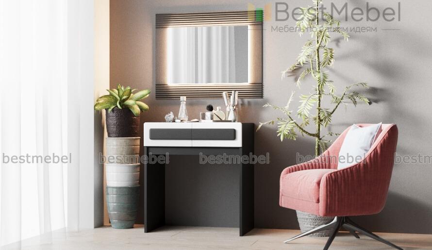 Стол туалетный с подсветкой Париж BMS отличается элегантным современным дизайном и компактными размерами, оптимальными для небольших спален. Композиция включает в себя столик с удобной для размещения косметики и аксессуаров столешницей и двумя выдвижными ящиками, а также незаменимое для ухода за собой навесное зеркало в широкой рельефной раме. Строгие линии эффектно подчеркивает контрастная черно-белая гамма. Купить стол туалетный с подсветкой Париж BMS приглашаем недорого в наш интернет-магазин.