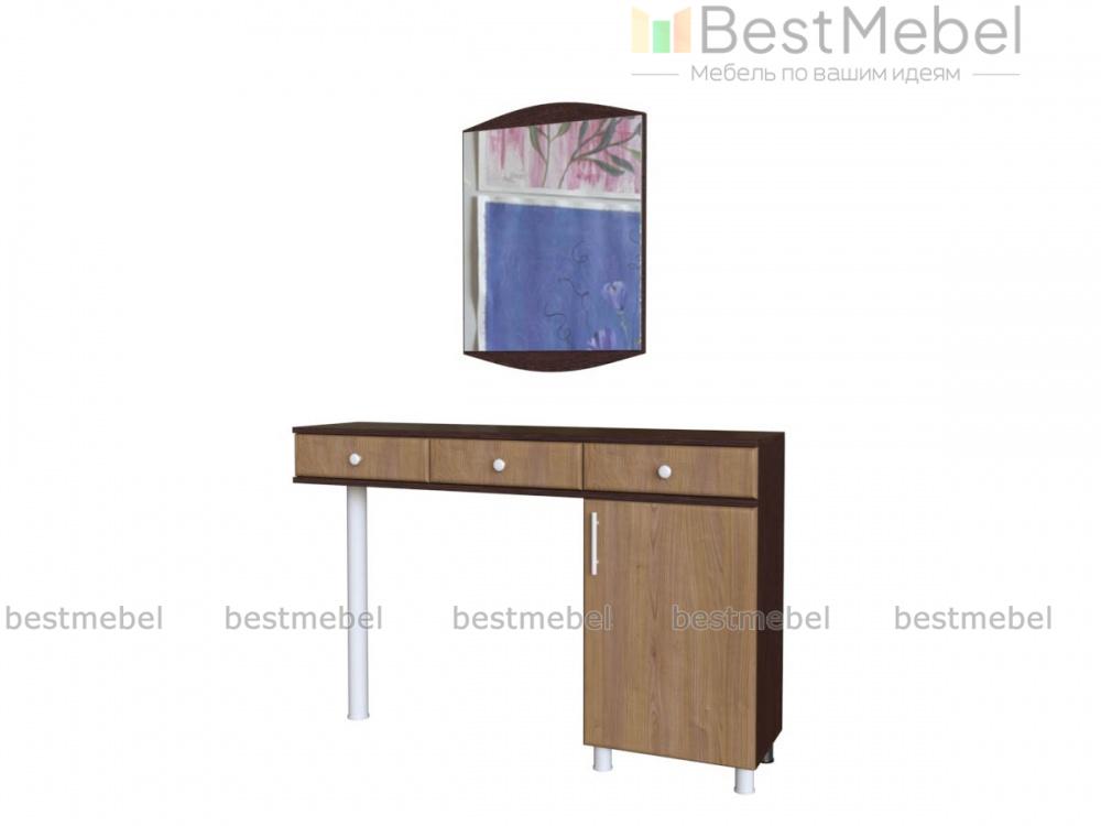 Туалетный столик Мелисса СТ 116 BMS отличается вместительностью и функциональностью, но при этом визуальной легкостью. Модель оборудована широкой столешницей, тремя выдвижными ящиками и распашным отделением с полкой, опираясь одной стороной на устойчивую хромированную опору. Элегантный вид придают столику матовые фасады и эффектное цветовое сочетание древесных оттенков. Купить туалетный столик Мелисса СТ 116 BMS по привлекательной цене приглашаем в наш интернет-магазин.