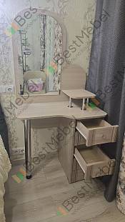 Очень довольна покупкой. Качественный товар. Великолепная текстура, идеальные детали. Фурнитура замечательная. В комплекте было всё. Сами собрали без проблем. Зеркало прикрепили на своё усмотрение, оставила сверху место, для светильника на прищепке. Столик функционально очень удобный: полочка на столешнице, 5 вместительных ящиков, легко двигающихся. Оригинальный дизайн, сглаженные углы, создают комфортную обстановку в комнате. За ним приятно находиться, привести себя в порядок или использовать в качестве письменного стола и даже работать швейной машинке вполне удобно. Благодарю производителя за замечательную модель, полноценную комплектацию и аккуратную упаковку всех деталей. И конечно благодарю интернет-магазин за вежливых сотрудников менеджеров и организацию своевременной и качественной доставки.