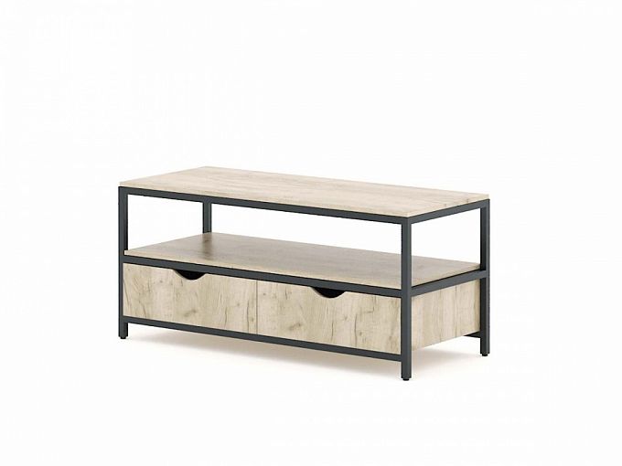 Тумба под ТВ Эстер 10 BMS подходит для меблировки небольших гостиных и студий благодаря компактным размерам. Низкая тумба с широкой столешницей, просторной нишей и двумя выдвижными ящиками разместит ТВ и прочую аппаратуру, книги, интерьерные украшения и бытовые мелочи. Поверхности из ЛДСП натуральных древесных тонов скомбинированы с прочным металлическим каркасом. Купить тумбу под ТВ Эстер 10 BMS для интерьера в индустриальном стиле приглашаем в наш интернет-магазин.