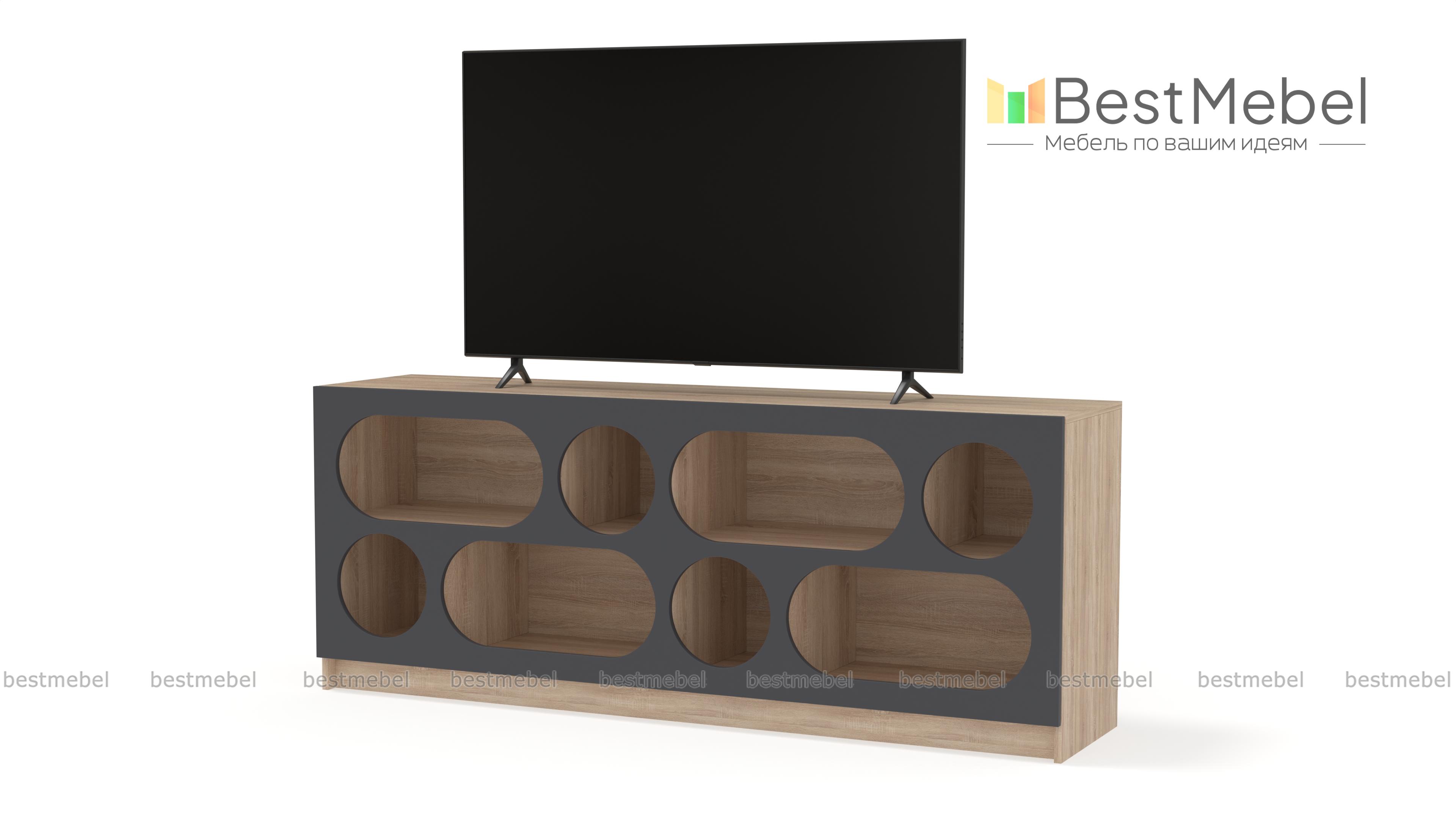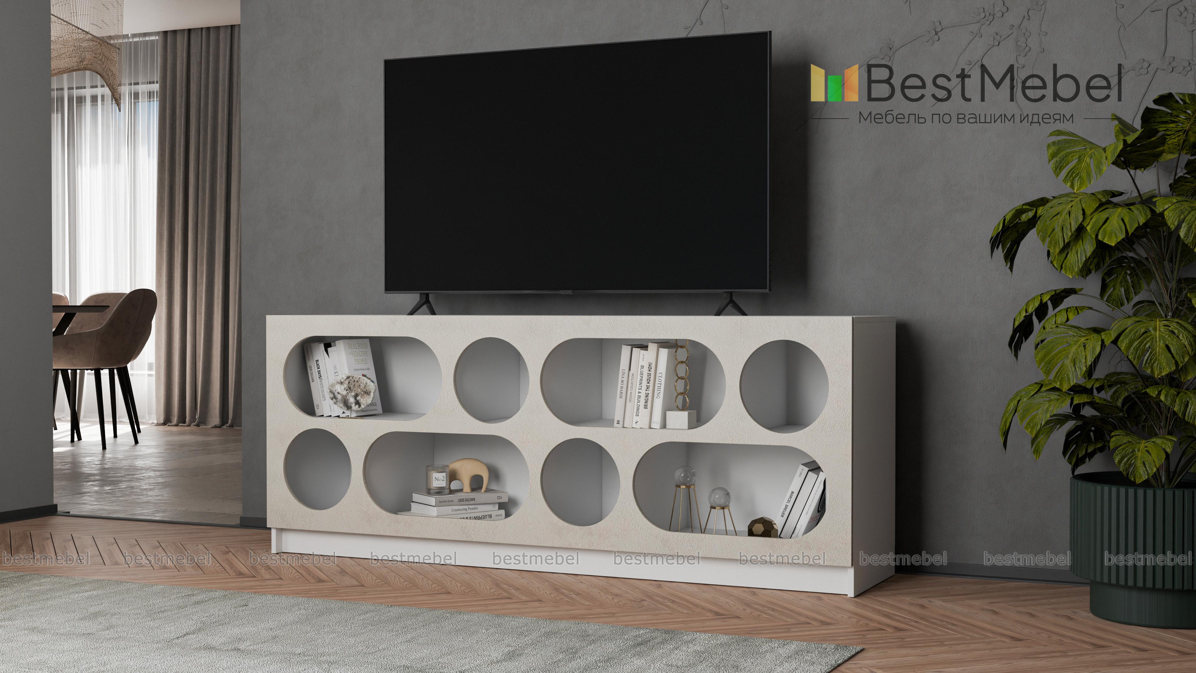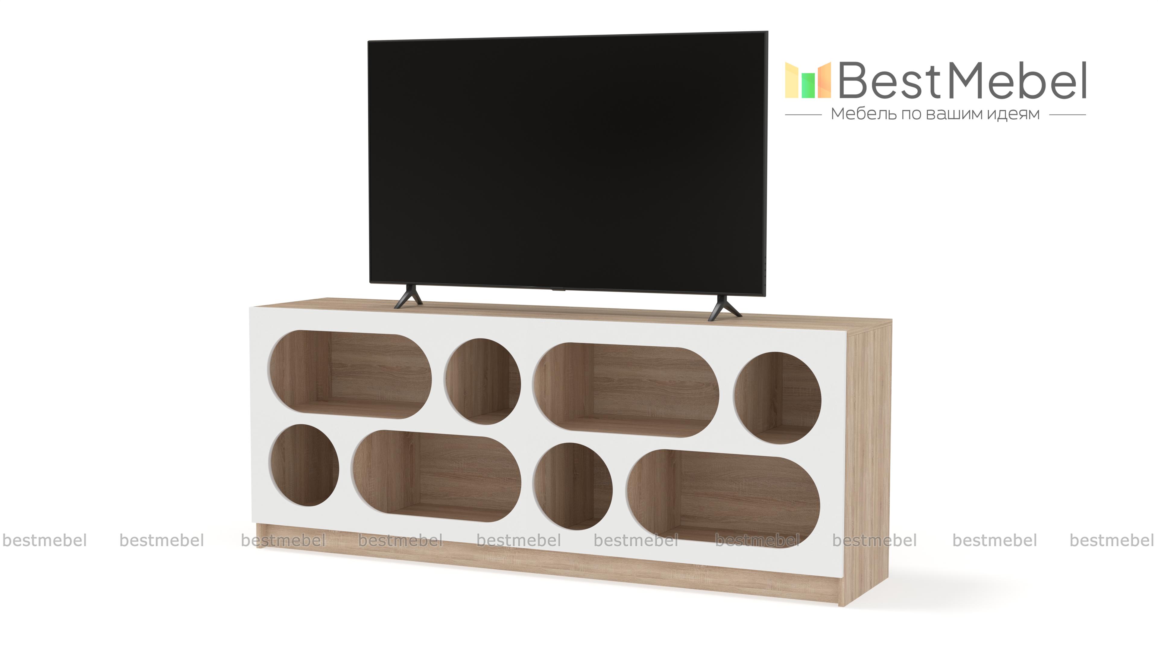 Тумба под ТВ Руди 2 BMS не только разместит аппаратуру, но и поможет организовать хранение ваших любимых книг, всевозможных гаджетов, мелочей и декора. Нестандартный дизайн с овальными и круглыми вырезами подчеркнет достоинства современного интерьера. Вертикальные перегородки делят внутреннее пространство тумбы на секции разных размеров для максимально удобного хранения. Купить тумбу под ТВ Руди 2 BMS с изготовлением по индивидуальным размерам вы сможете в нашем интернет-магазине.