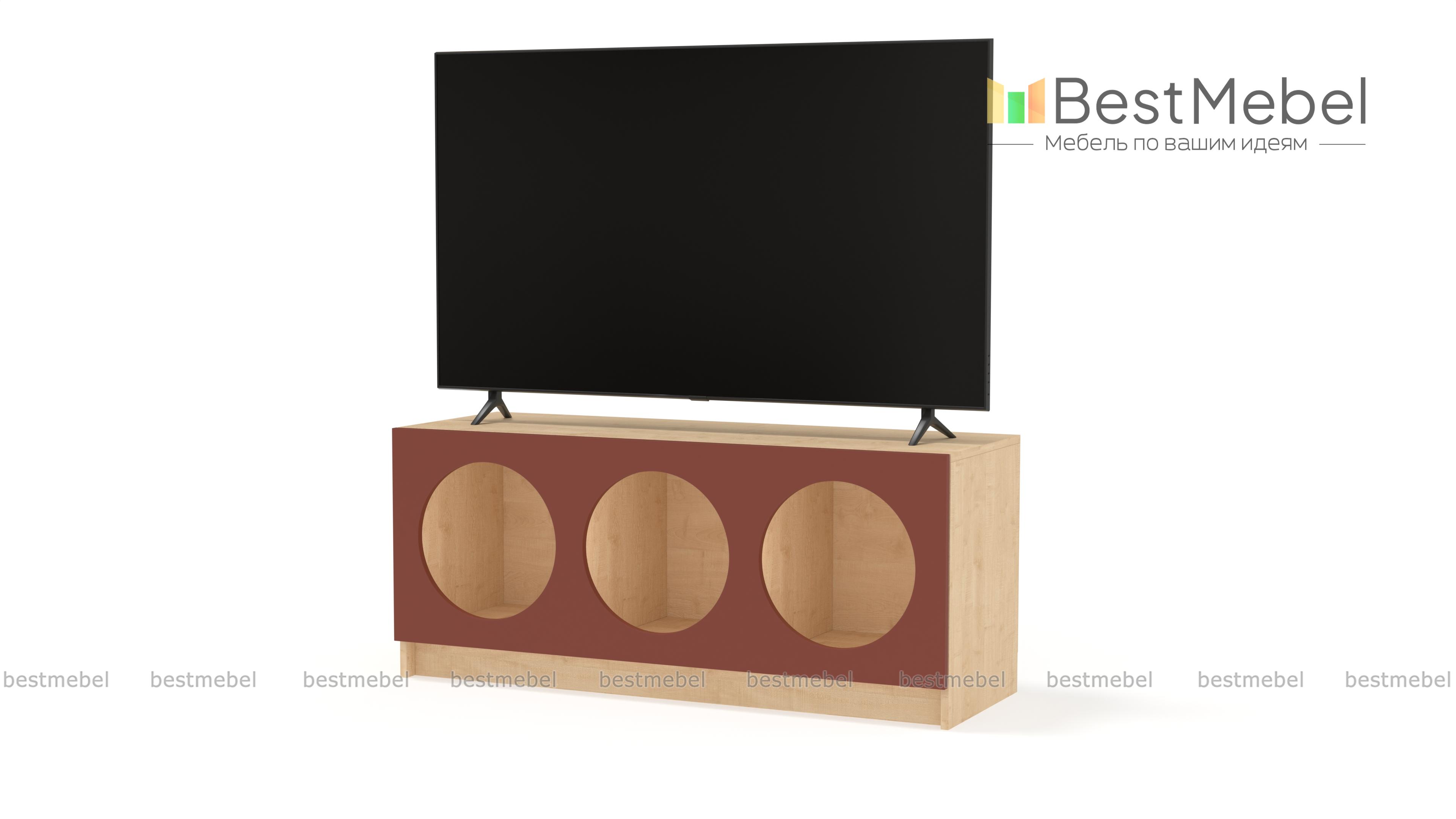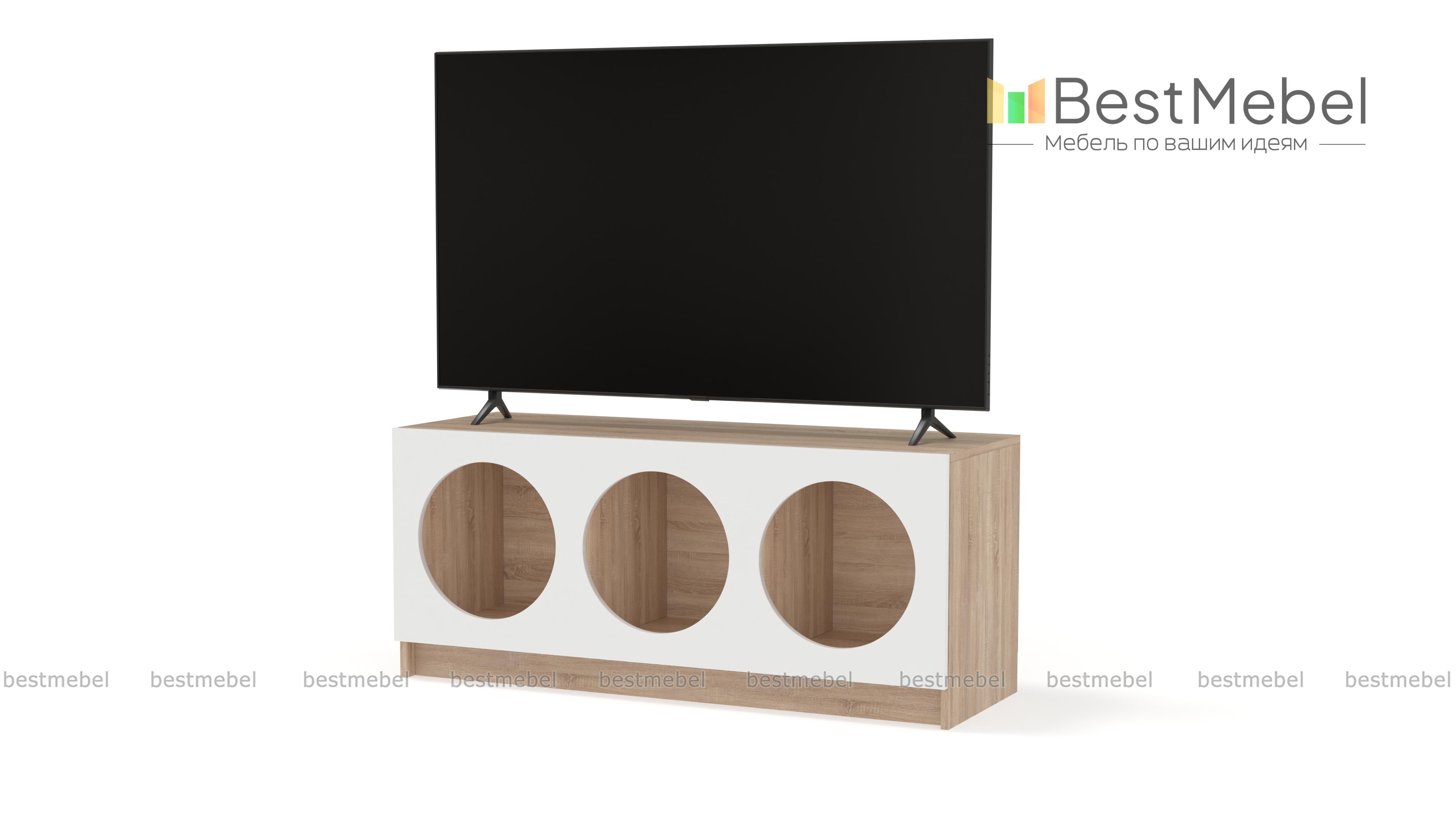 Тумба под ТВ Руди 5 BMS с цветным фасадом — компактный и стильный вариант в маленькую гостиную или комнату подростка. Вырезные круглые полки интересно представят книги, разнообразные гаджеты, интерьерные аксессуары и еще многое другое. Устойчивая конструкция с широкой столешницей оптимальна для размещения ТВ и прочей аудио- и видеоаппаратуры. Купить тумбу под ТВ Руди 5 BMS вы сможете в нашем интернет-магазине, подобрав гармонирующую с интерьером цветовую гамму.
